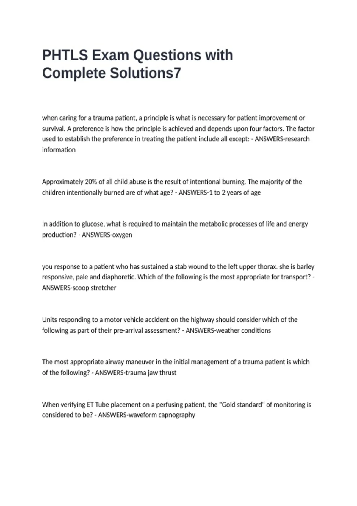 PHTLS Exam Questions with Complete Solutions