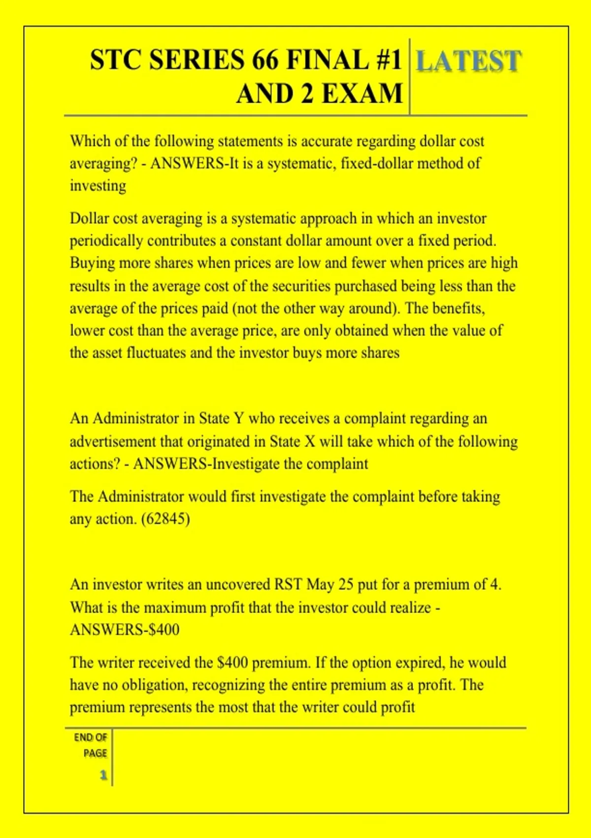 STC SERIES 66 FINAL #1 AND 2 EXAM QUESTIONS AND ANSWERS 2026