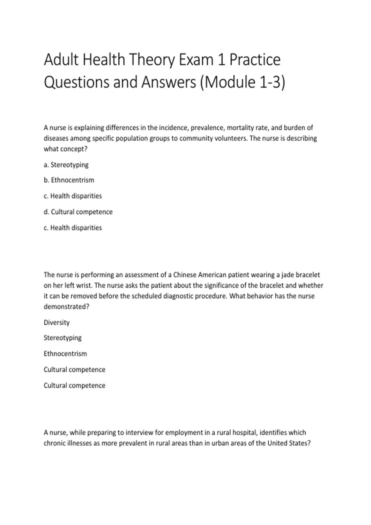 Adult Health Theory Exam 1 Practice