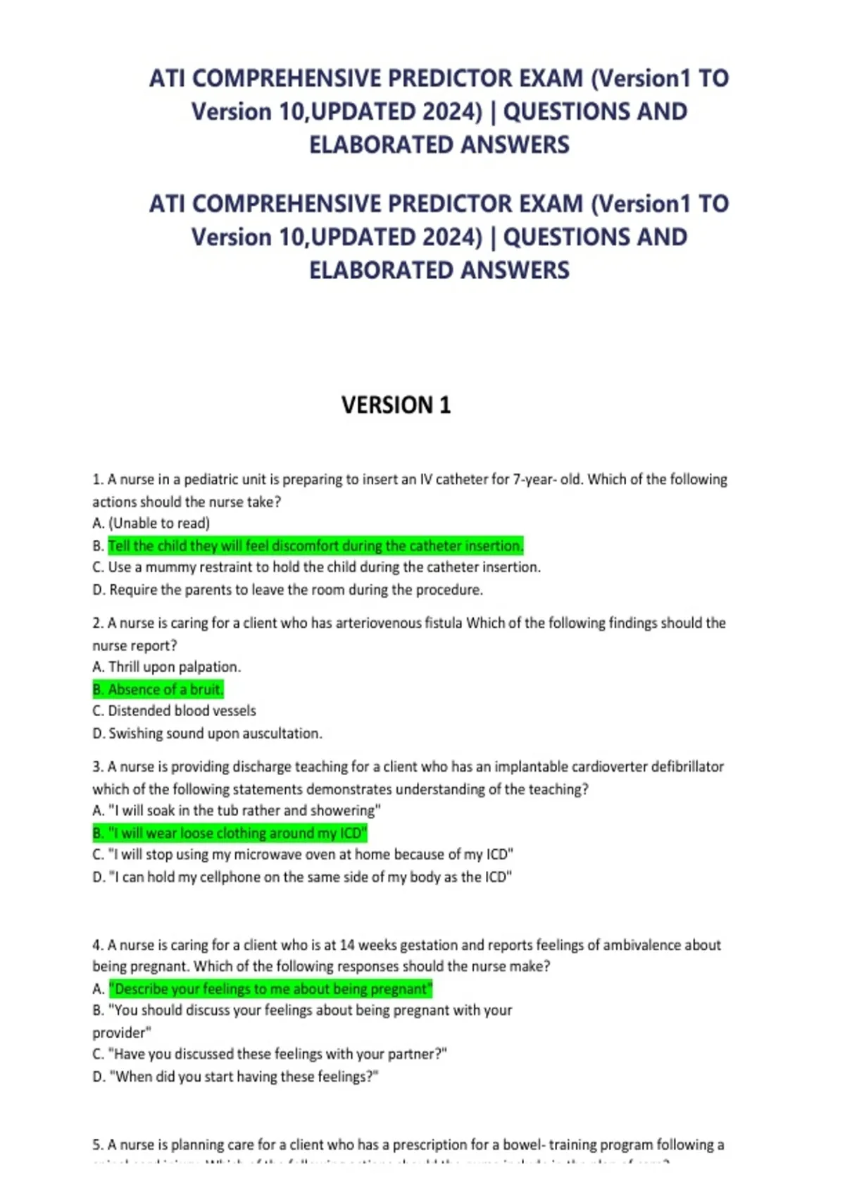 ATI COMPREHENSIVE PREDICTOR EXAM (Version1 TO