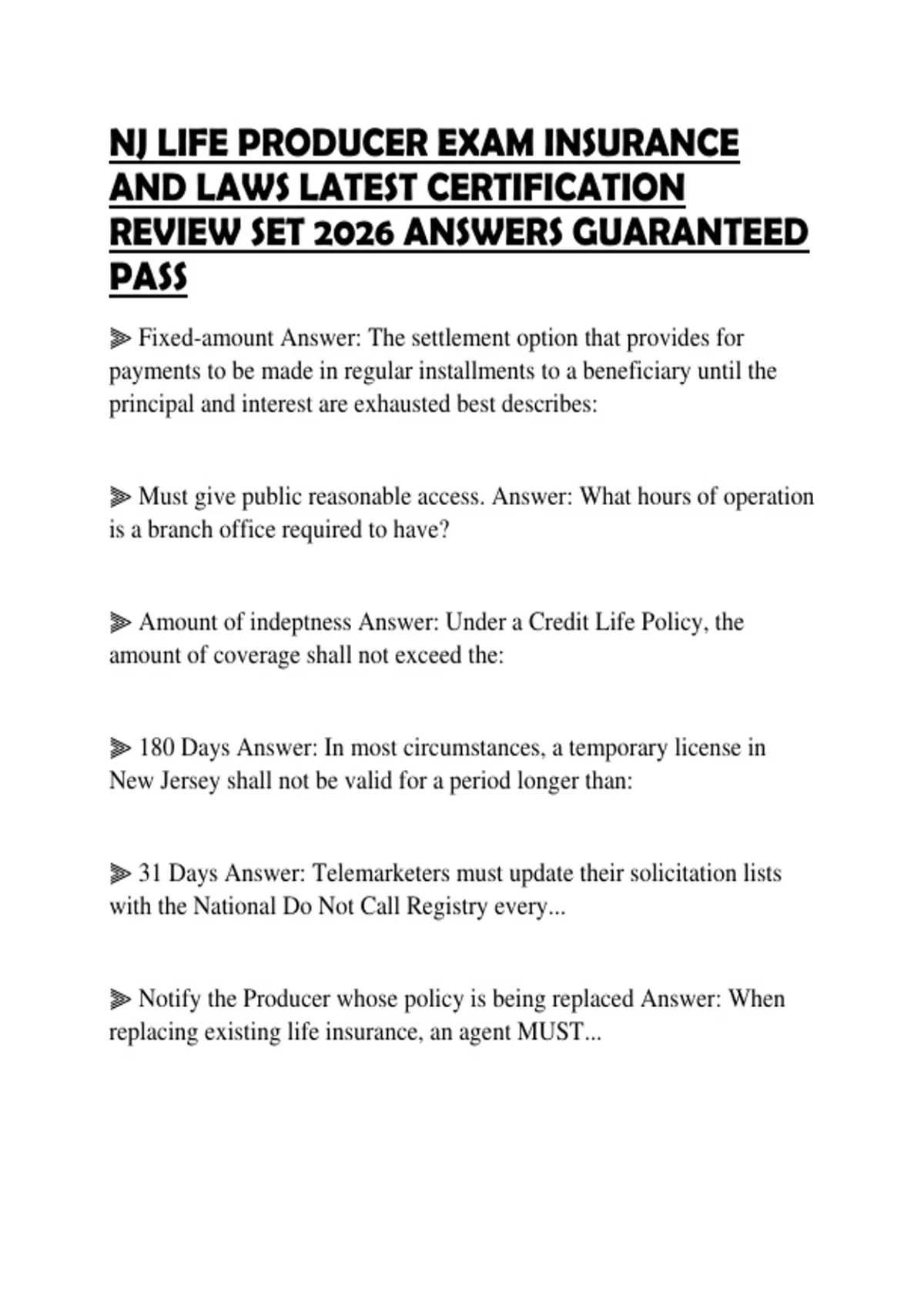 NJ LIFE PRODUCER EXAM INSURANCE AND LAWS LATEST PRACTICE SCRIPT UPDATED 2026 TESTED SOLUTIONS