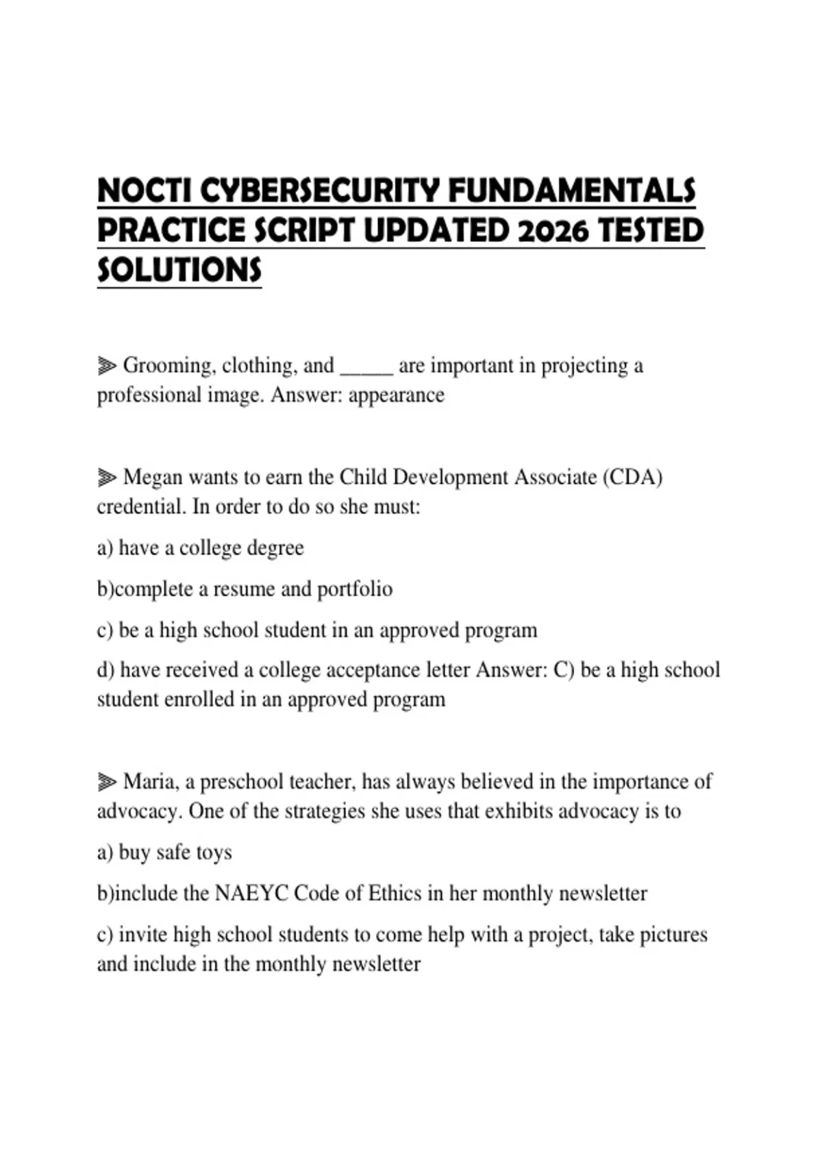 NOCTI CYBERSECURITY FUNDAMENTALS COMPREHENSIVE TEST PAPER 2026 COMPLETE ANSWERS ACCURATE