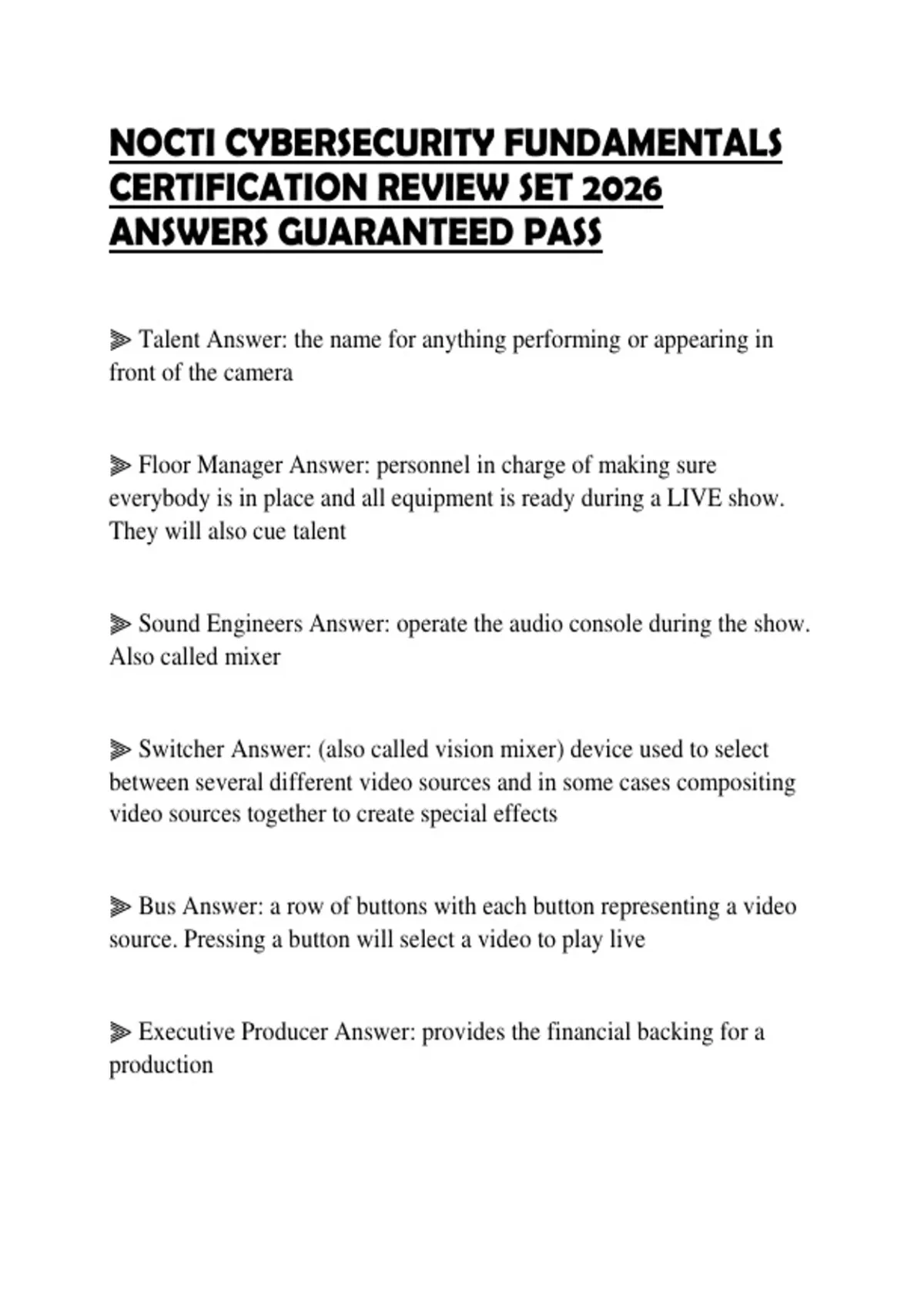 ANSWERS GUARANTEED PASS