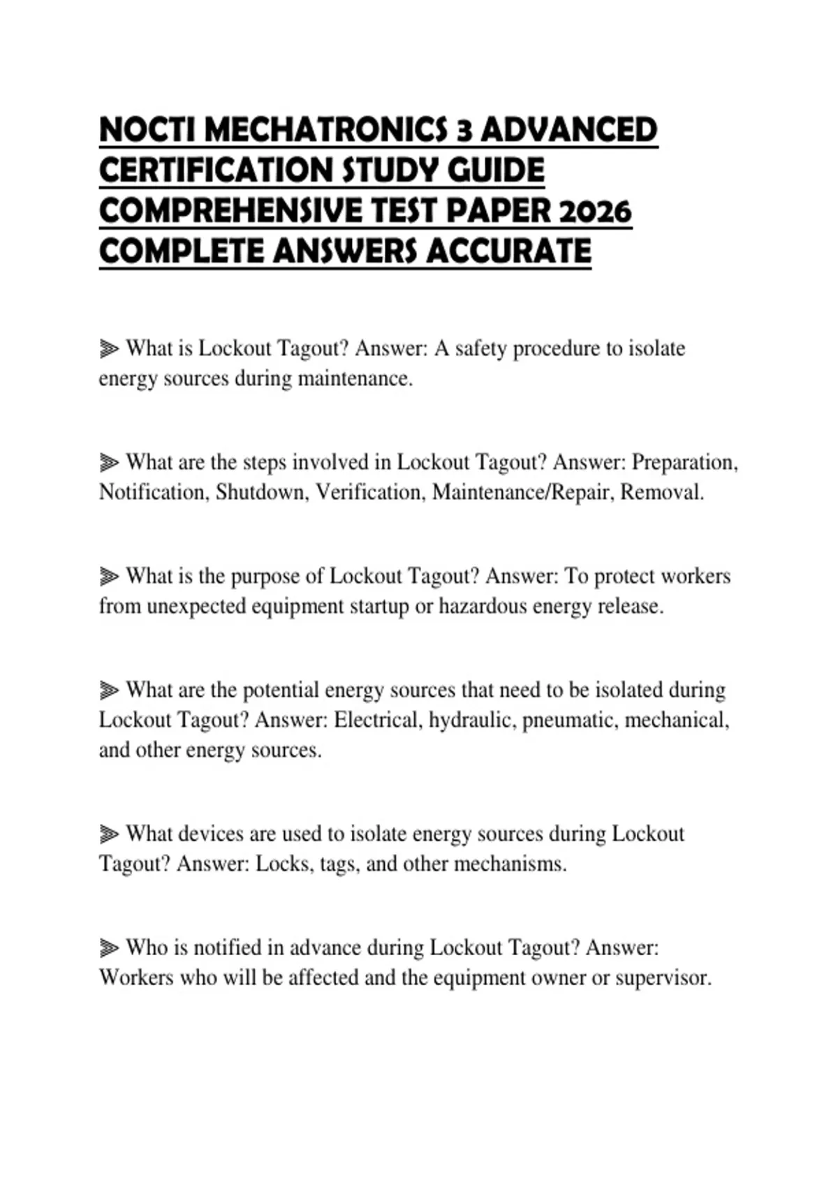 NOCTI MECHATRONICS 3 ADVANCED CERTIFICATION STUDY GUIDE ACTUAL EXAMINATION 2026 QUESTIONS WITH SOLUTIONS GRADED A+