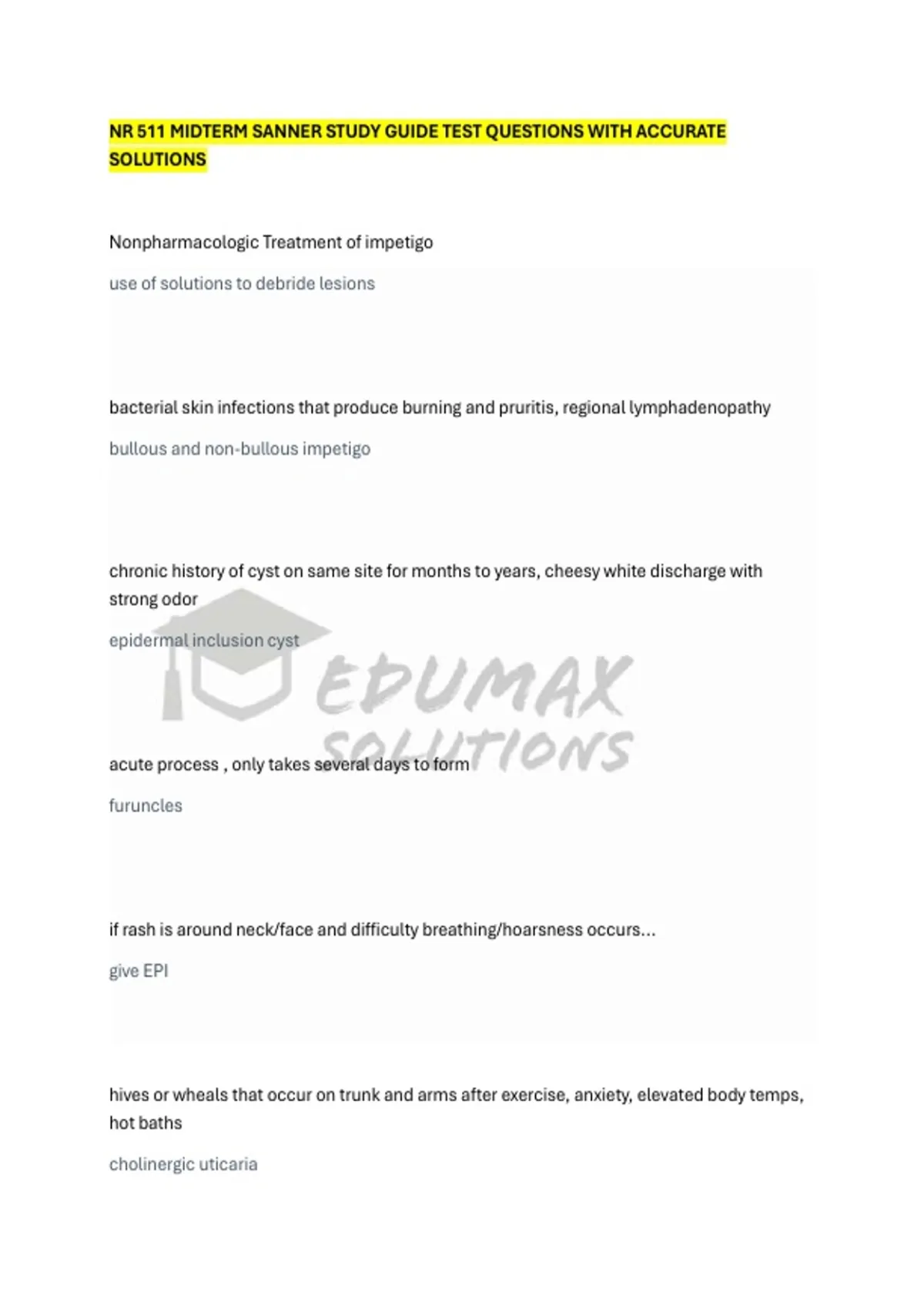 NR 511 MIDTERM SANNER STUDY GUIDE TEST QUESTIONS WITH ACCURATE