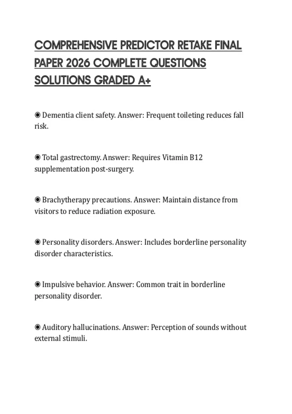 COMPREHENSIVE PREDICTOR RETAKE FINAL PAPER 2026 COMPLETE QUESTIONS SOLUTIONS GRADED A+