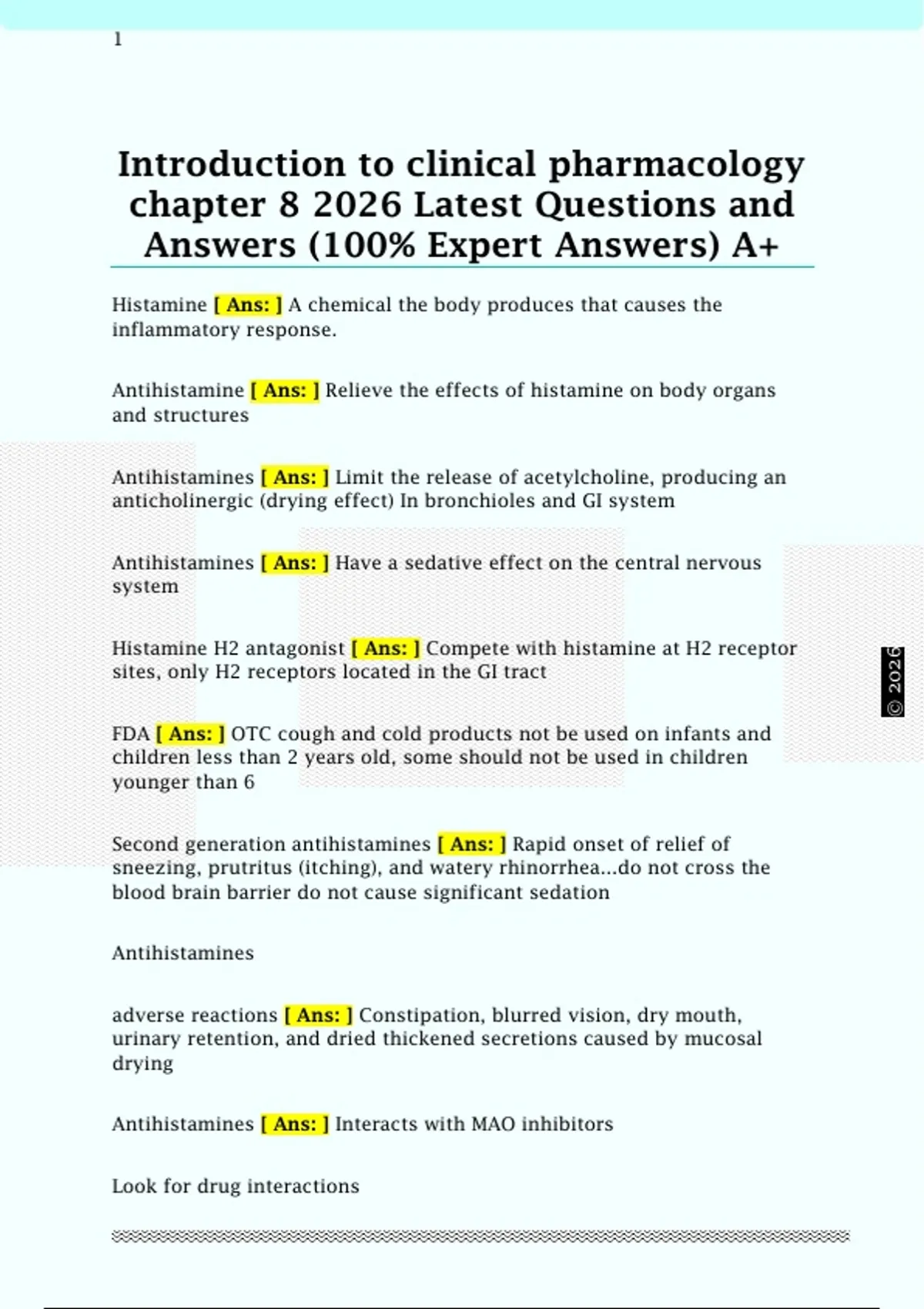 Introduction to clinical pharmacology chapter 8 2026 Latest Questions and Answers (100% Expert Answers) A+