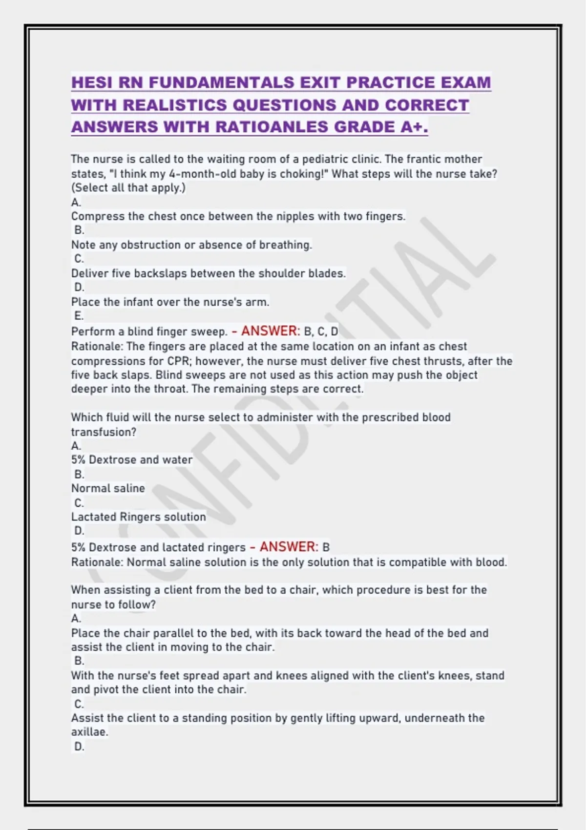 HESI RN FUNDAMENTALS EXIT PRACTICE EXAM WITH REALISTICS QUESTIONS AND CORRECT ANSWERS WITH RATIOANLES GRADE A+.