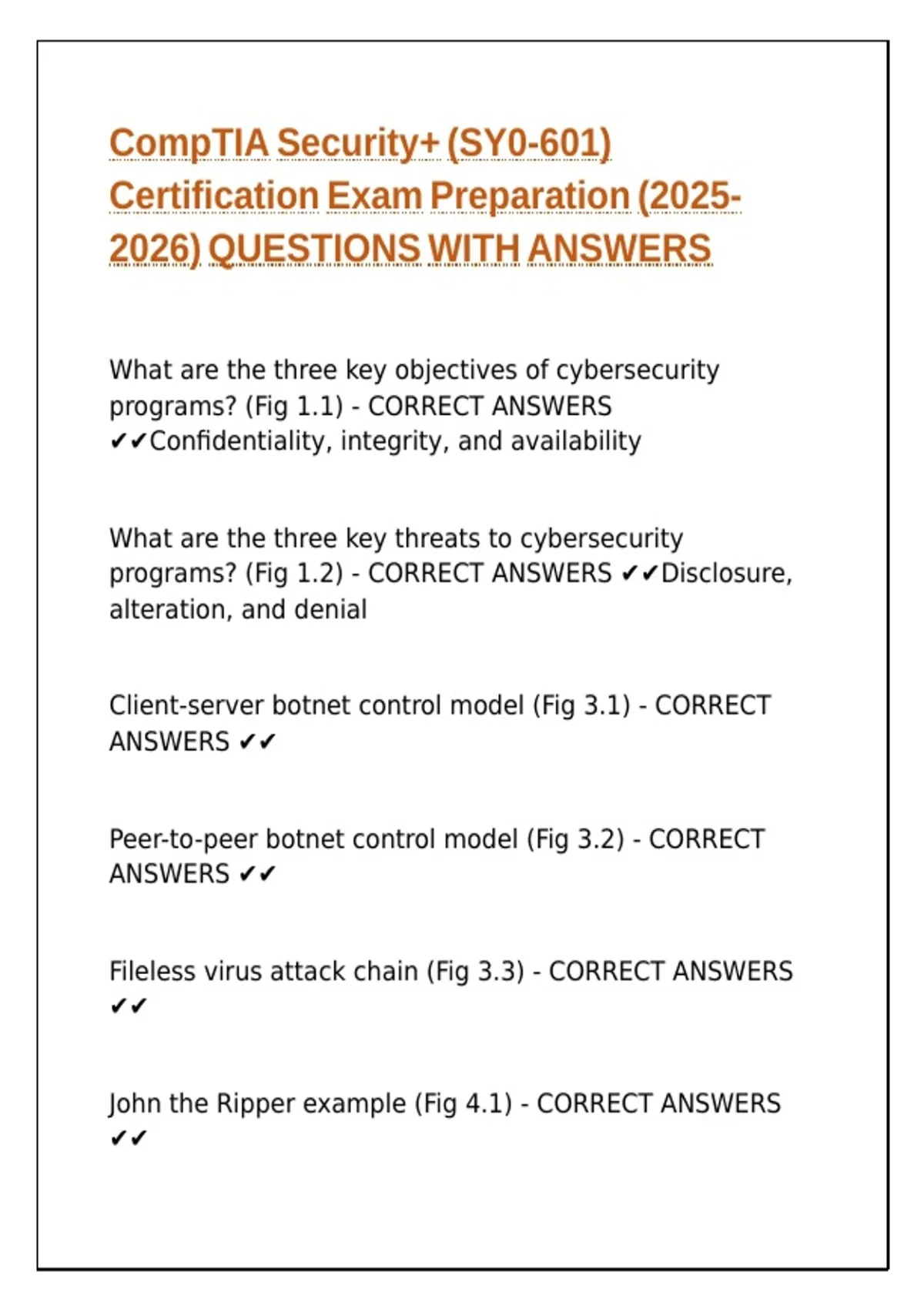 CompTIA Security+ (SY0-601) Certification Exam Preparation () QUESTIONS WITH ANSWERS