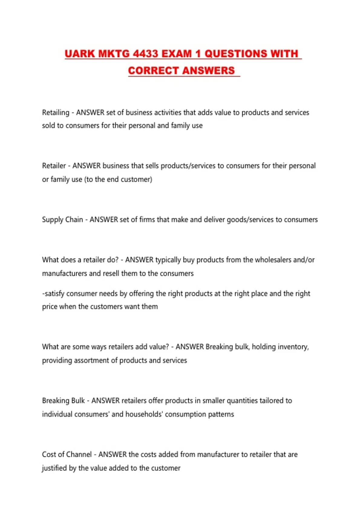 UARK MKTG 4433 EXAM 1 QUESTIONS WITH