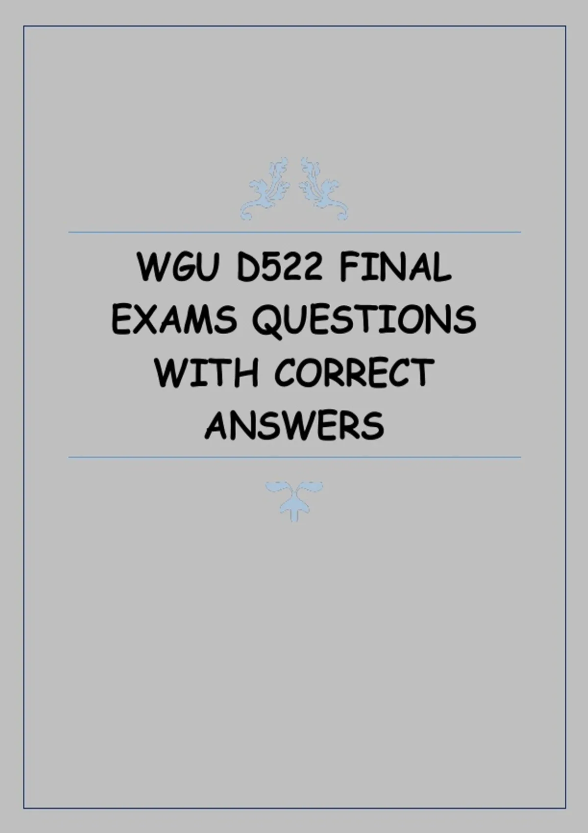 This document contains final exam–level practice questions with correct and verified answers for the WGU Python for IT Automation (D522) course. It covers all major exam domains, including Python fundamentals, scripting and automation tasks, file and data handling, error handling, functions, and real-world IT automation scenarios aligned with WGU assessment objectives.