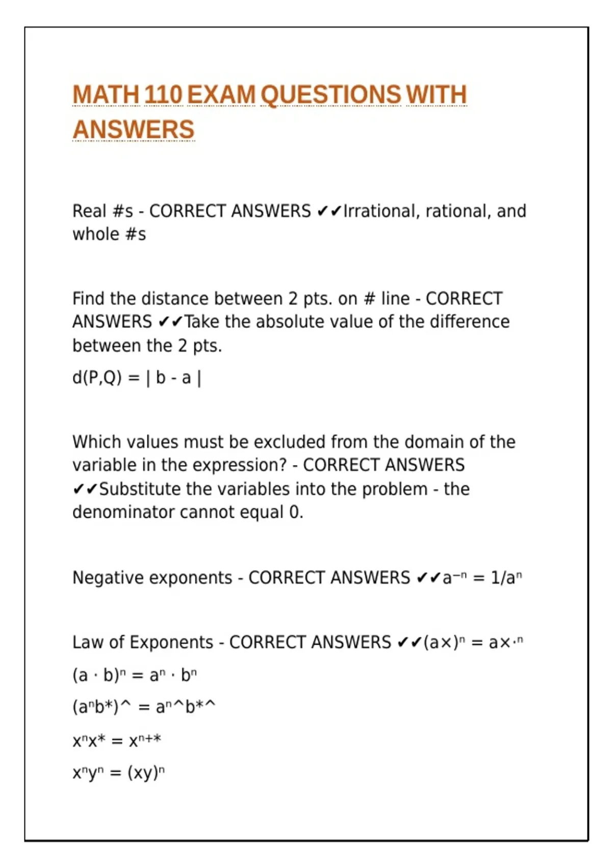 Law of Exponents - CORRECT ANSWERS ✔✔(a×)ⁿ = a×·ⁿ