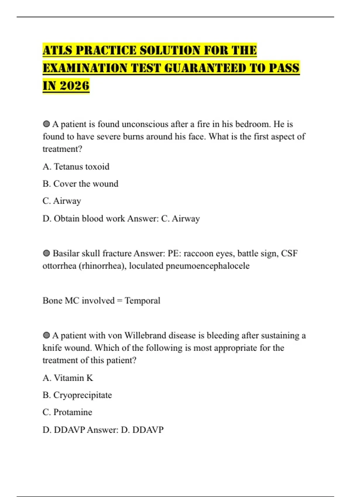 ATLS PRACTICE SOLUTION FOR THE