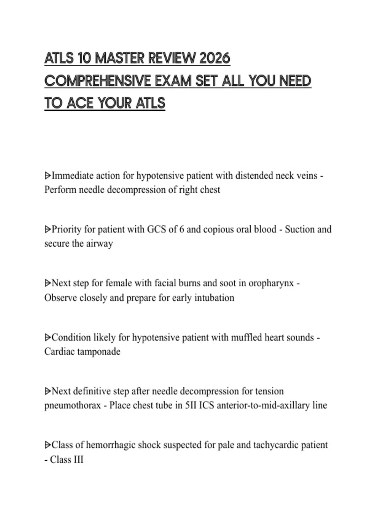 ATLS 10 MASTER REVIEW 2026 COMPREHENSIVE EXAM SET ALL YOU NEED TO ACE YOUR ATLS