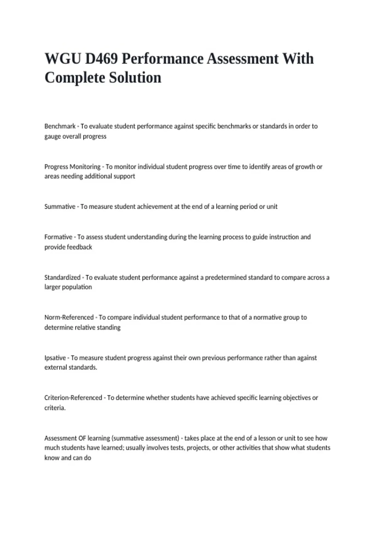 Benchmark - To evaluate student performance against specific benchmarks or standards in order to