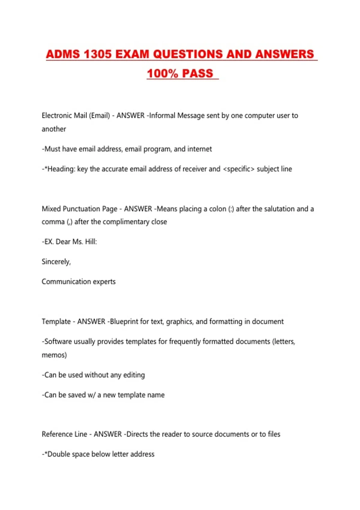 ADMS 1305 EXAM QUESTIONS AND ANSWERS