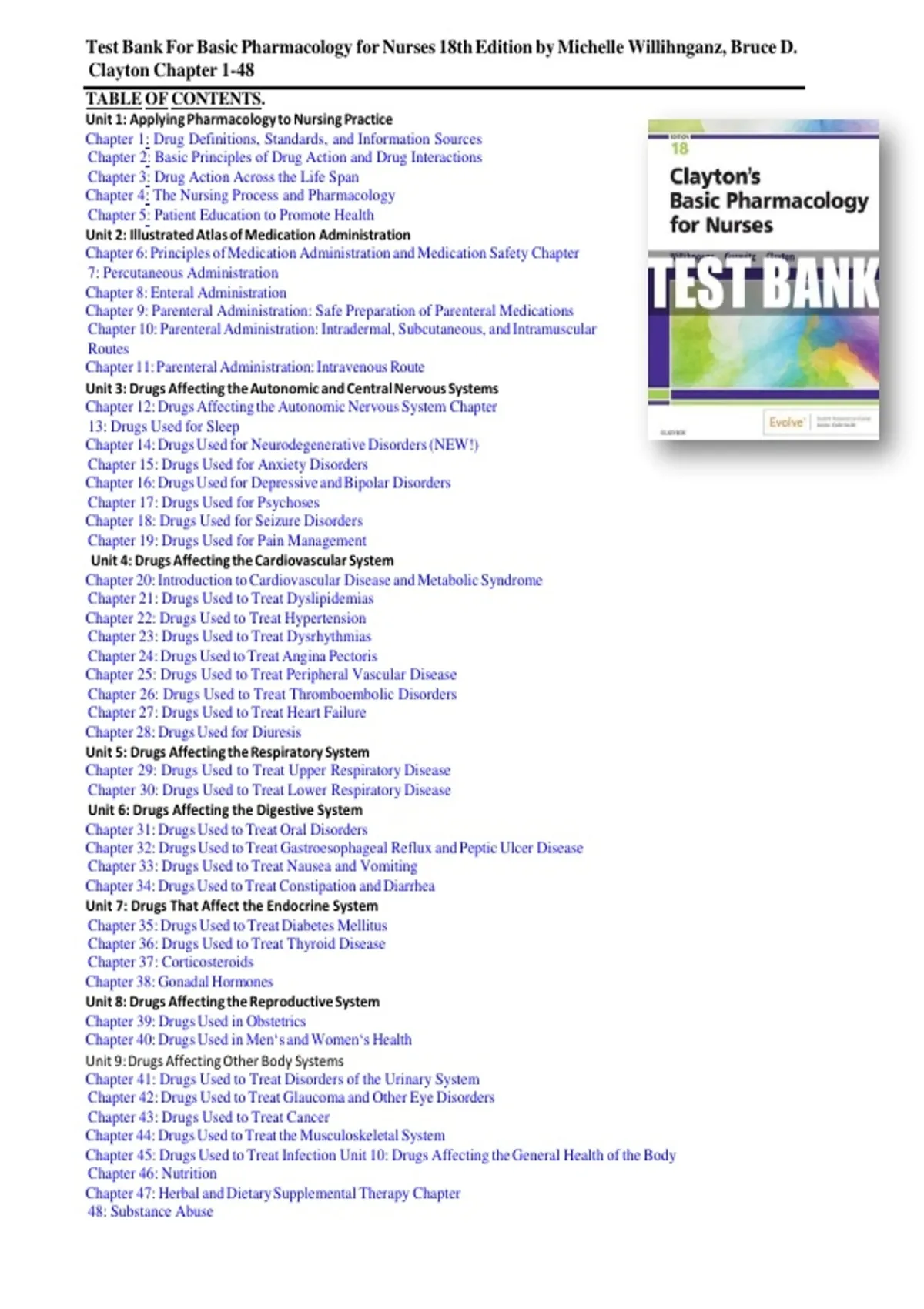 Test Bank Complete Clayton’s Basic Pharmacology for Nurses 18th Edition Willihnganz, – by Chapter with Answers |newest update 2026 Test Bank Complete Clayton’s Basic Pharmacology for Nurses 18th Edition Willihnganz, – by Chapter with Answers |newest update 2026 Test Bank Complete Clayton’s Basic Pharmacology for Nurses 18th Edition Willihnganz, – by Chapter with Answers |newest update 2026 Test Bank Complete Clayton’s Basic Pharmacology for Nurses 18th Edition Willihnganz, – by Chapter with Answers |newest update 2026 Test Bank Complete Clayton’s Basic Pharmacology for Nurses 18th Edition Willihnganz, – by Chapter with Answers |newest update 2026