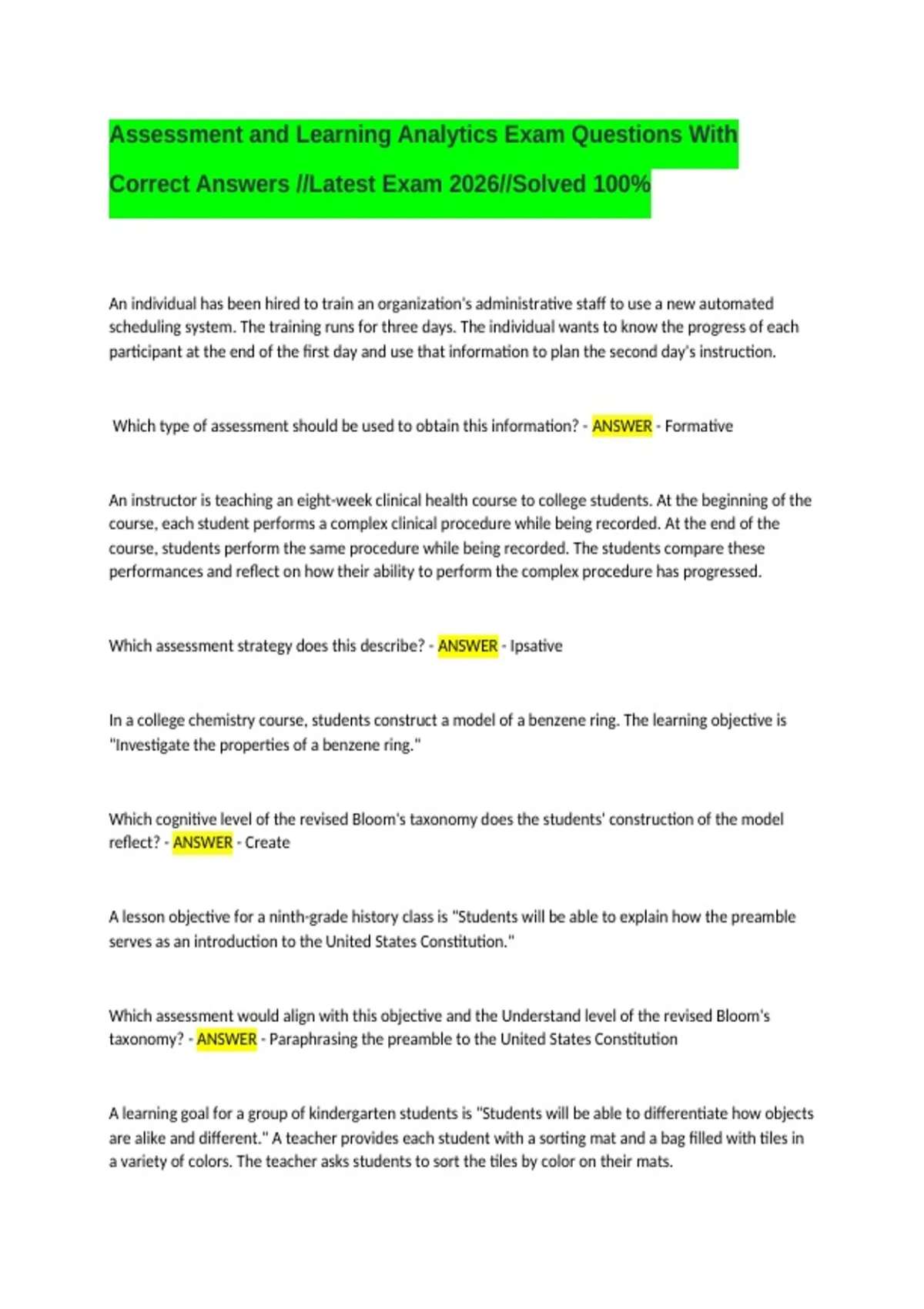 Assessment and Learning Analytics Exam Questions With Correct Answers //Latest Exam 2026//Solved 100%