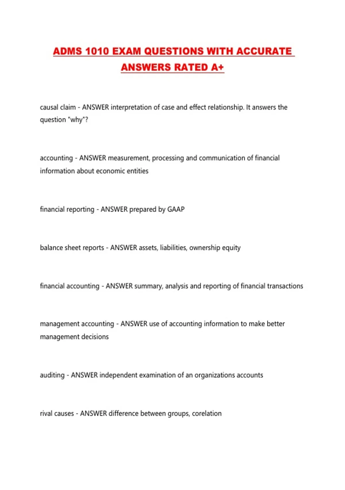 ADMS 1010 EXAM QUESTIONS WITH ACCURATE