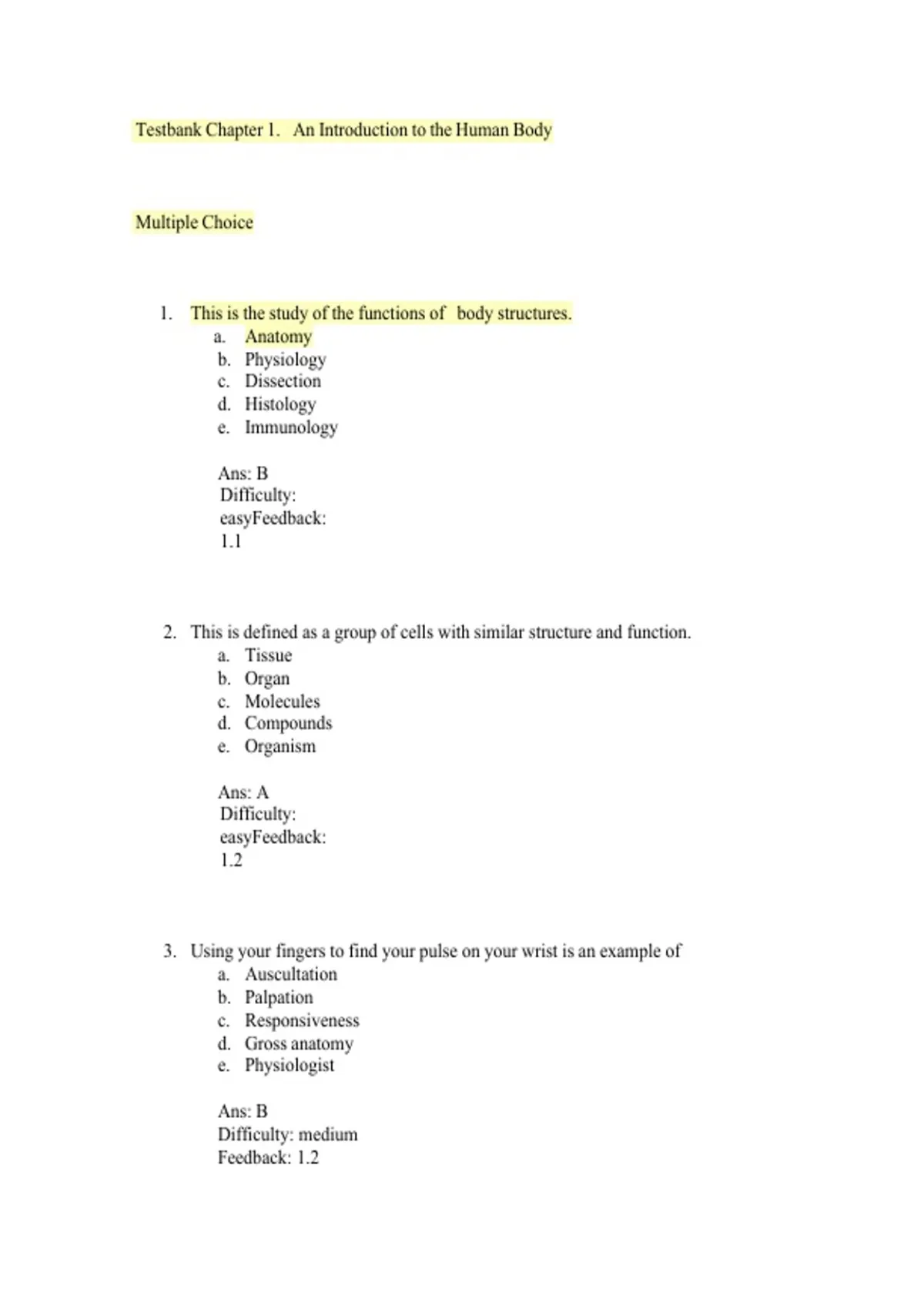 Testbank IChapter I1. I An IIntroduction Ito Ithe IHuman IBody