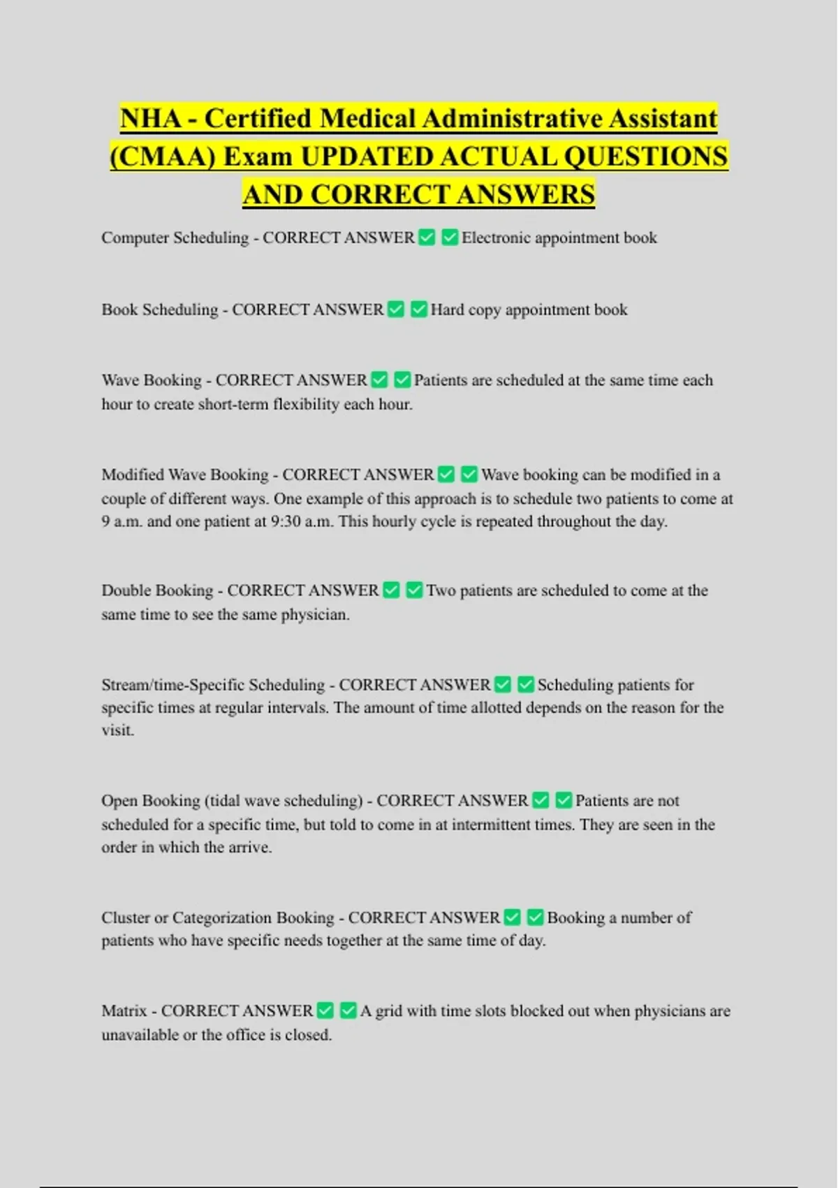 Wave Booking - CORRECT ANSWER Patients are scheduled at the same time each