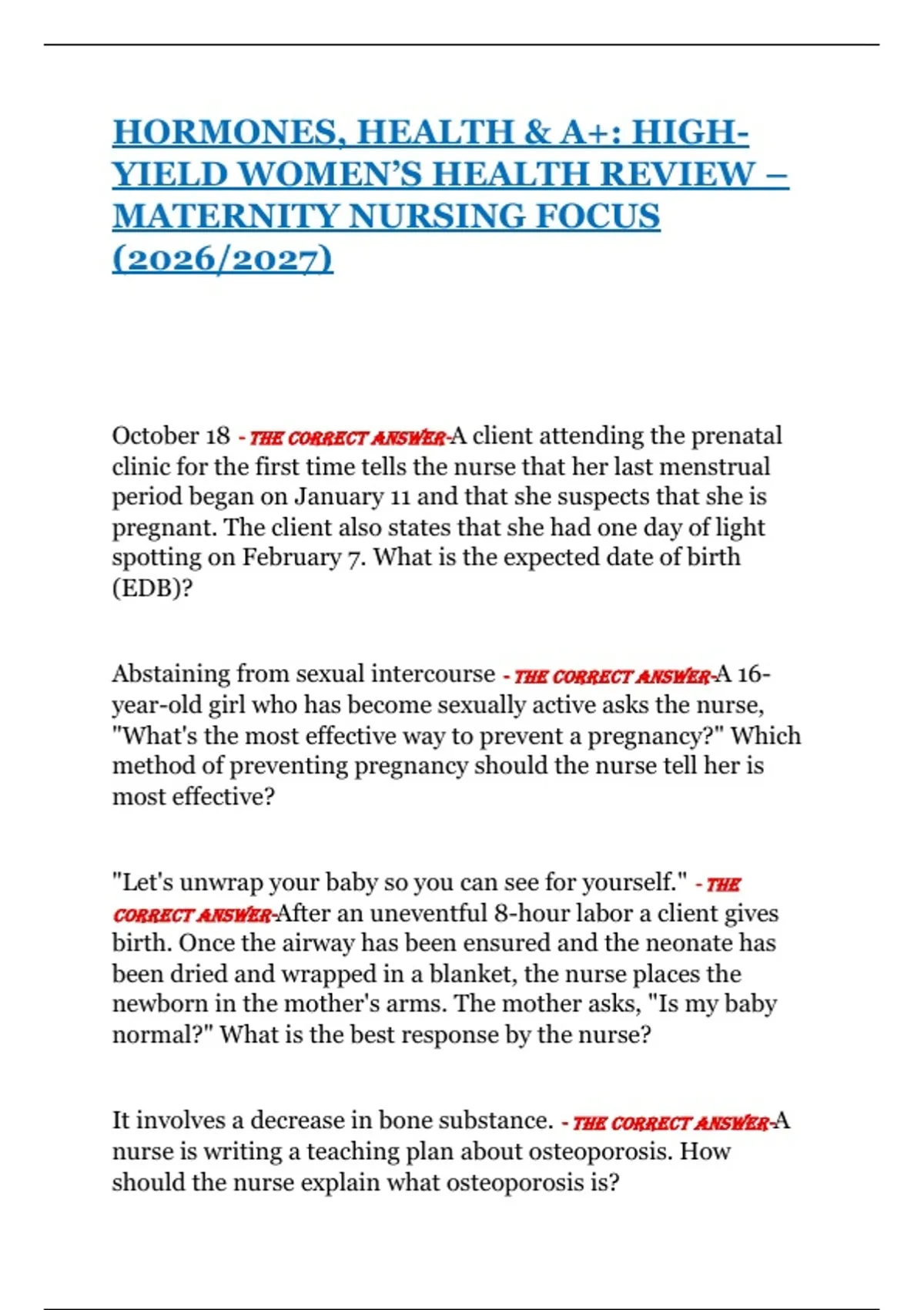 October 18 - THE CORRECT ANSWER-A client attending the prenatal
