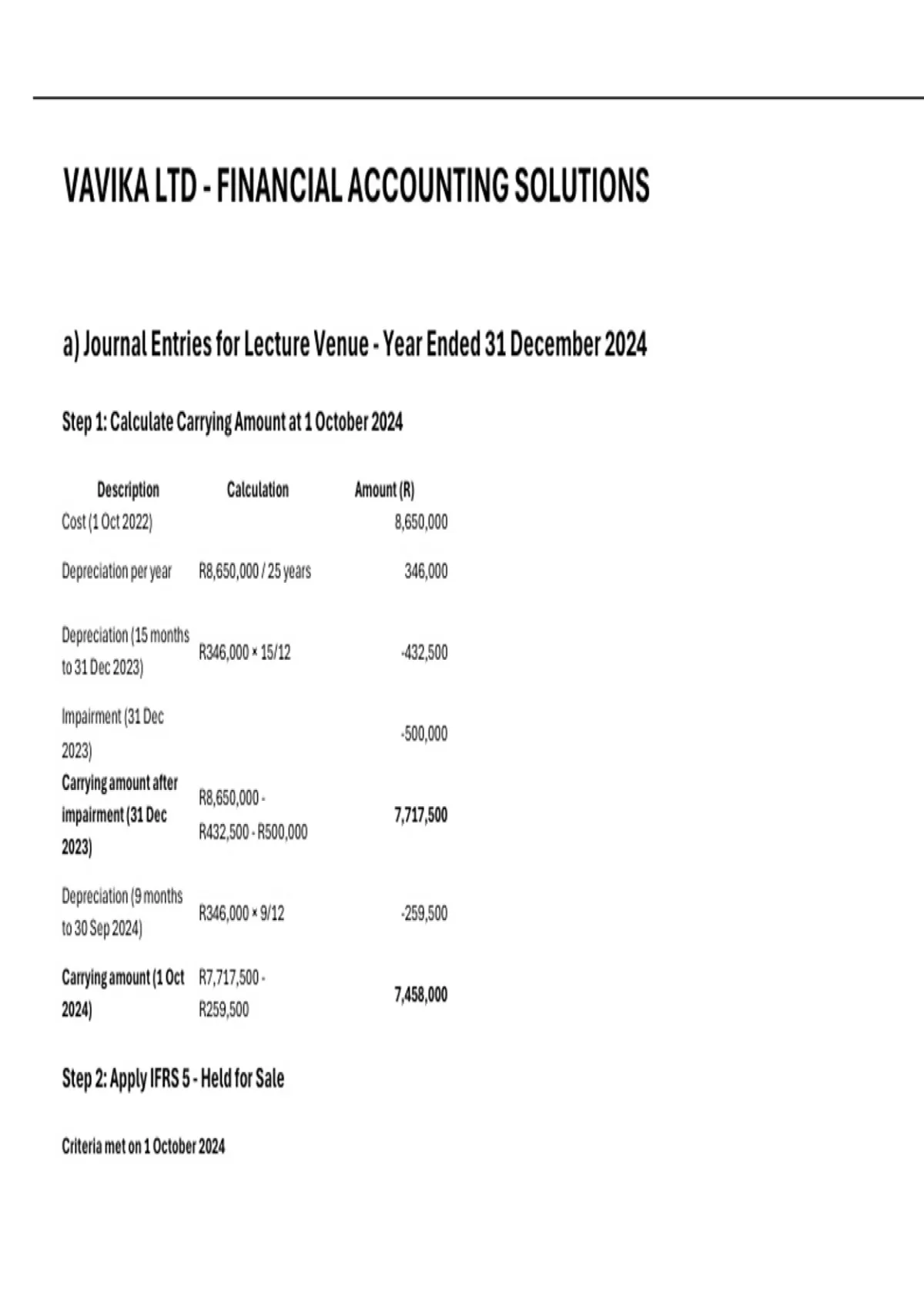 a) Journal Entries for Lecture Venue - Year Ended 31 December 2024