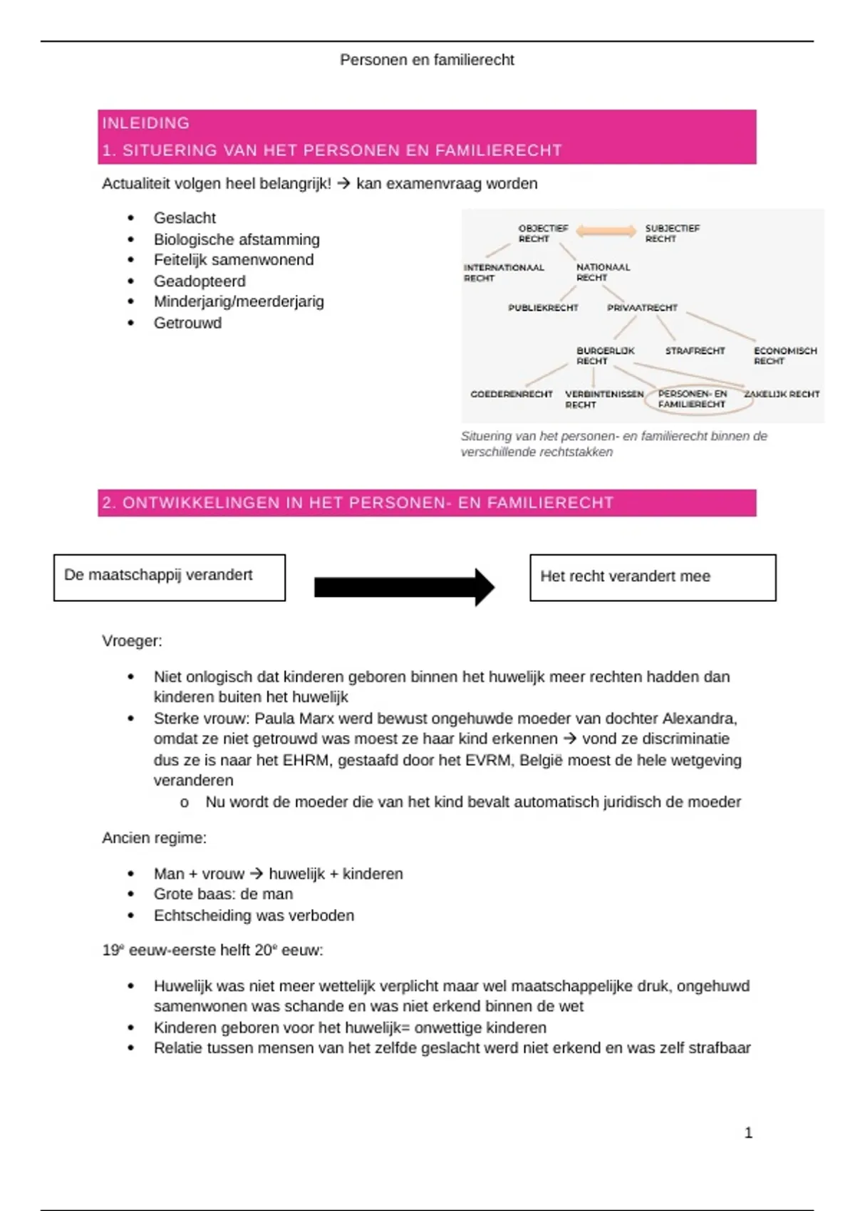1. SITUERING VAN HET PERSONEN EN FAMILIERECHT