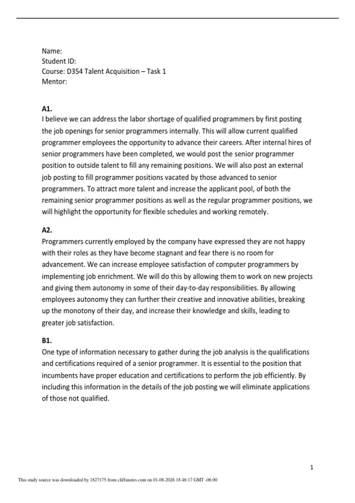 D354 Talent Acquisition – Task 1.pdf Page 1 of 2 Exam Preparation Complete Study Guide with Solution 2025/ 2026