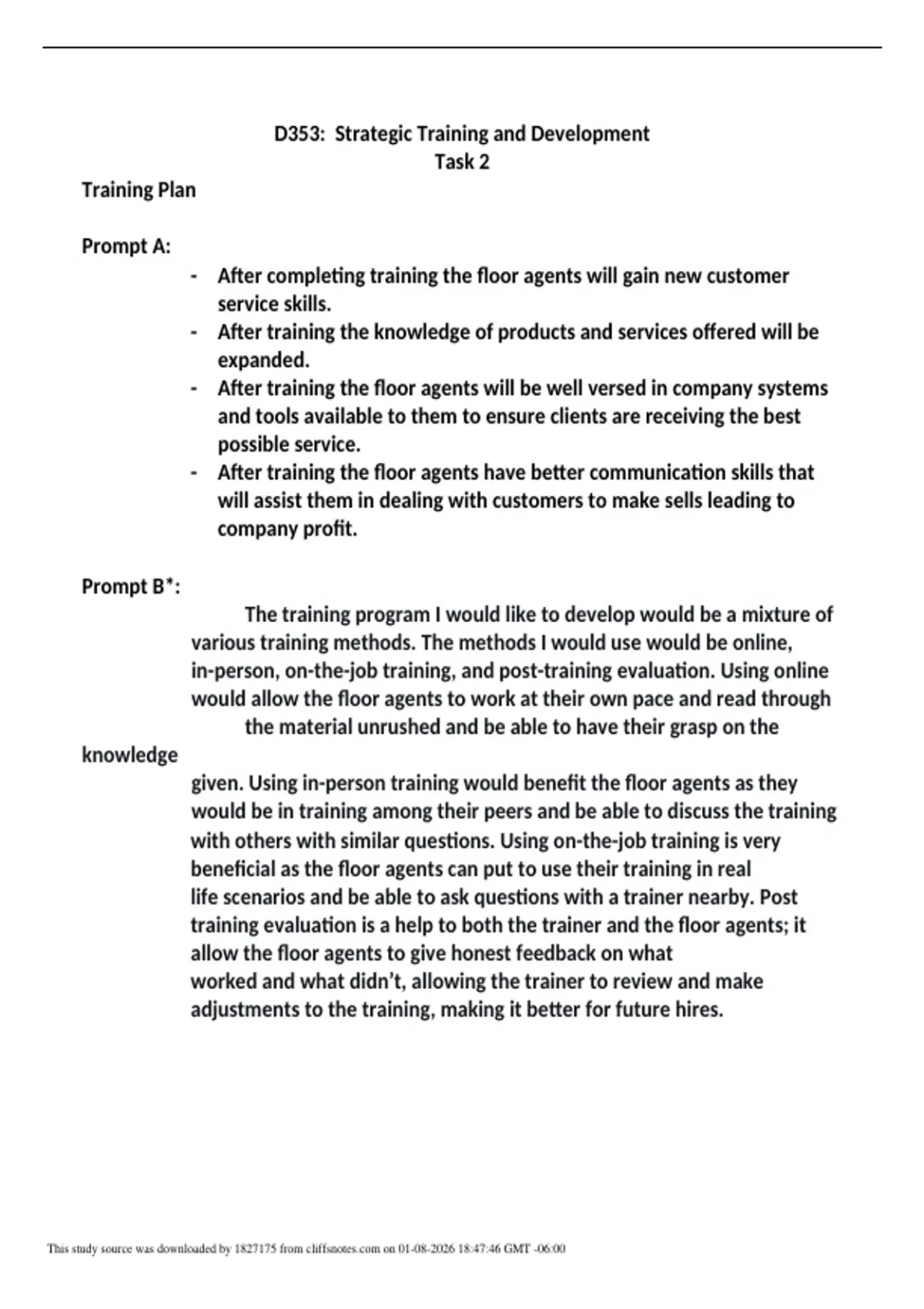 D353 Strategic Training and Development Task 2 D353 Strategic Training and Development Task 2D353 Strategic Training and Development Task 2.pdf