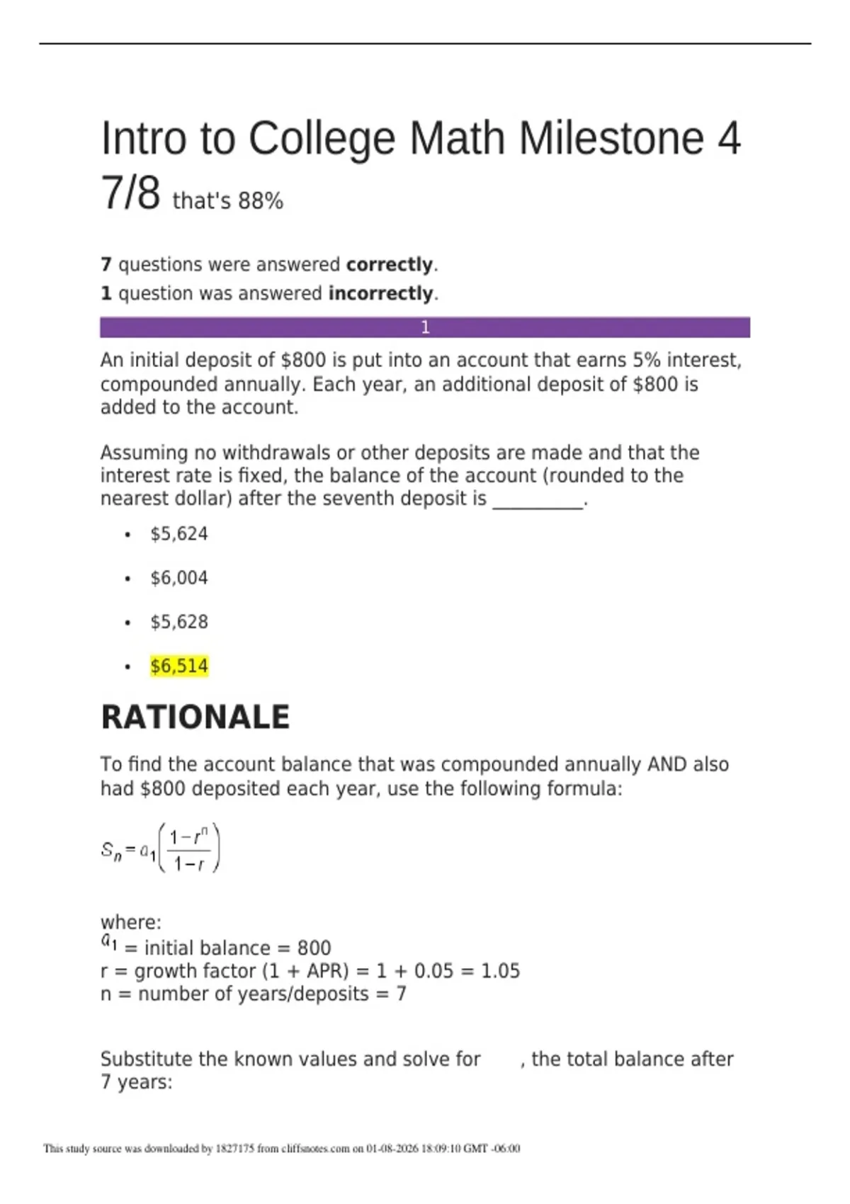 Intro to College Math Milestone 4.pdf Page 1 of 8 Exam Preparation Complete Study Guide with Solution 2025/ 2026