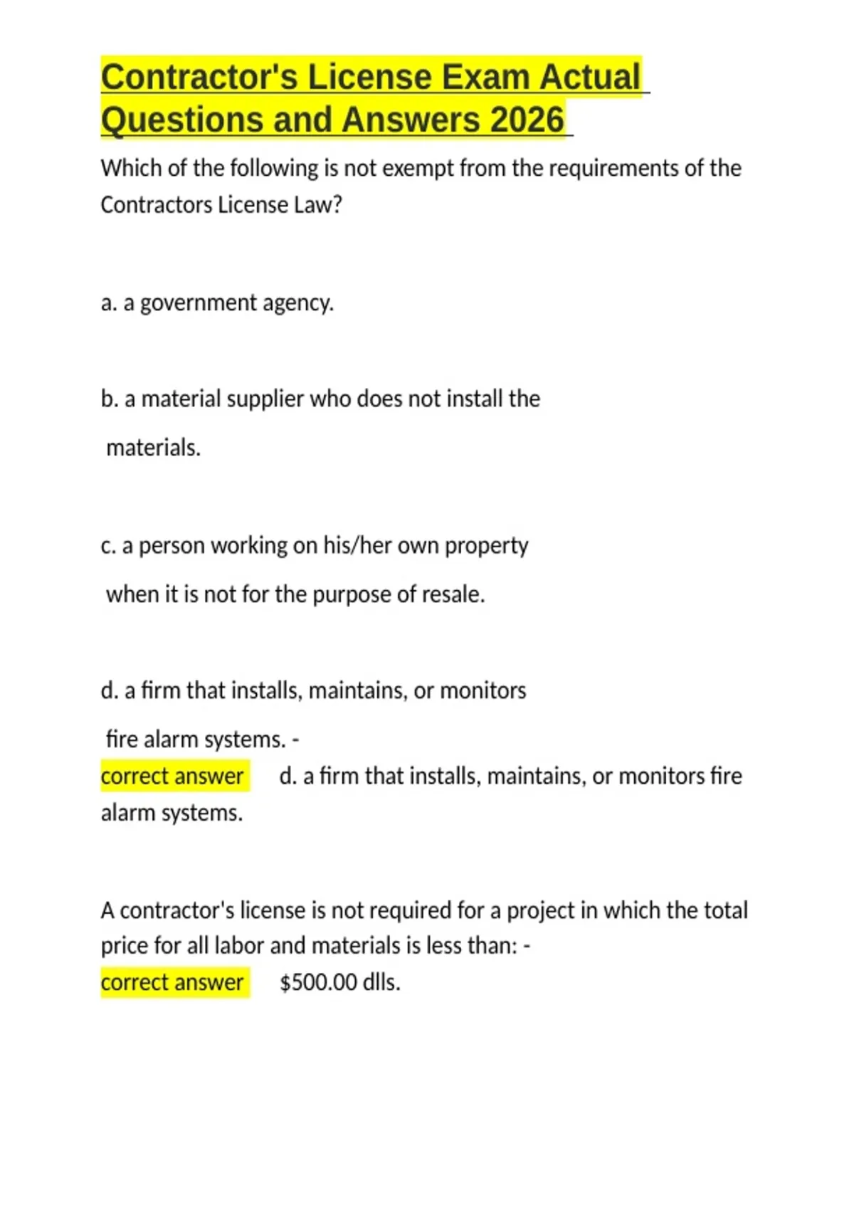 , Contractor's License Exam Actual