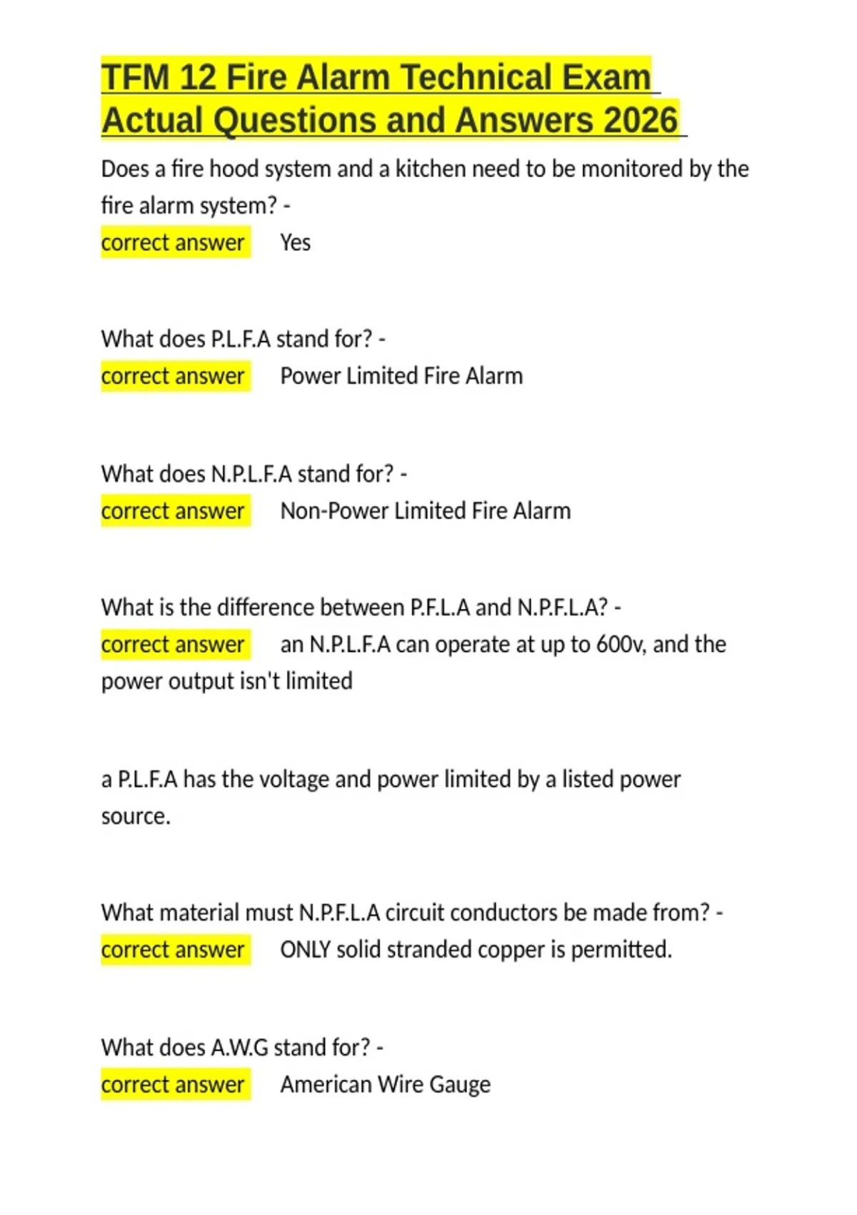 correct answer ✅Non-Power Limited Fire Alarm