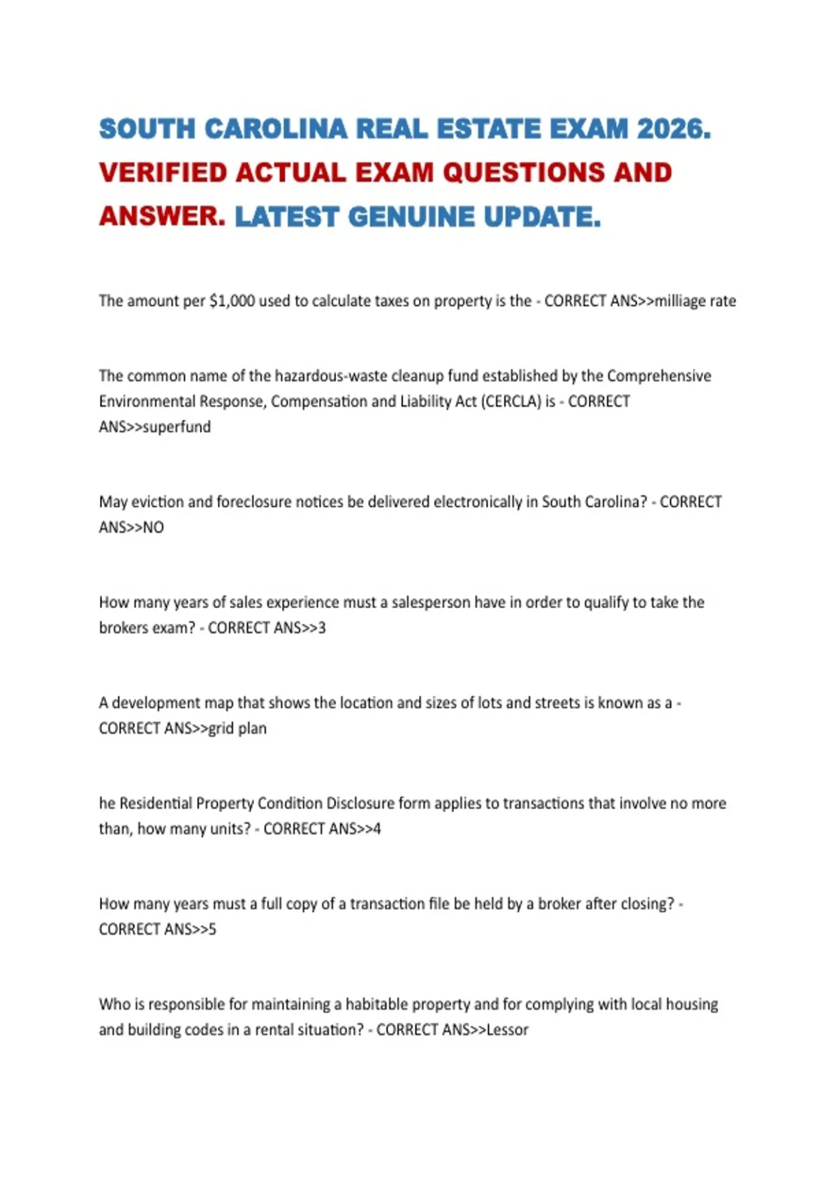 VERIFIED ACTUAL EXAM QUESTIONS AND
