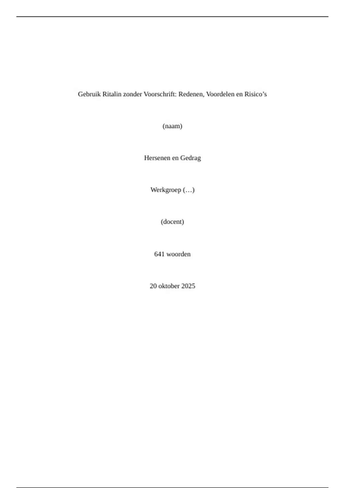 gebruik van Ritalin is een academische context. Dit kan onder andere zijn om hogere cijfers te