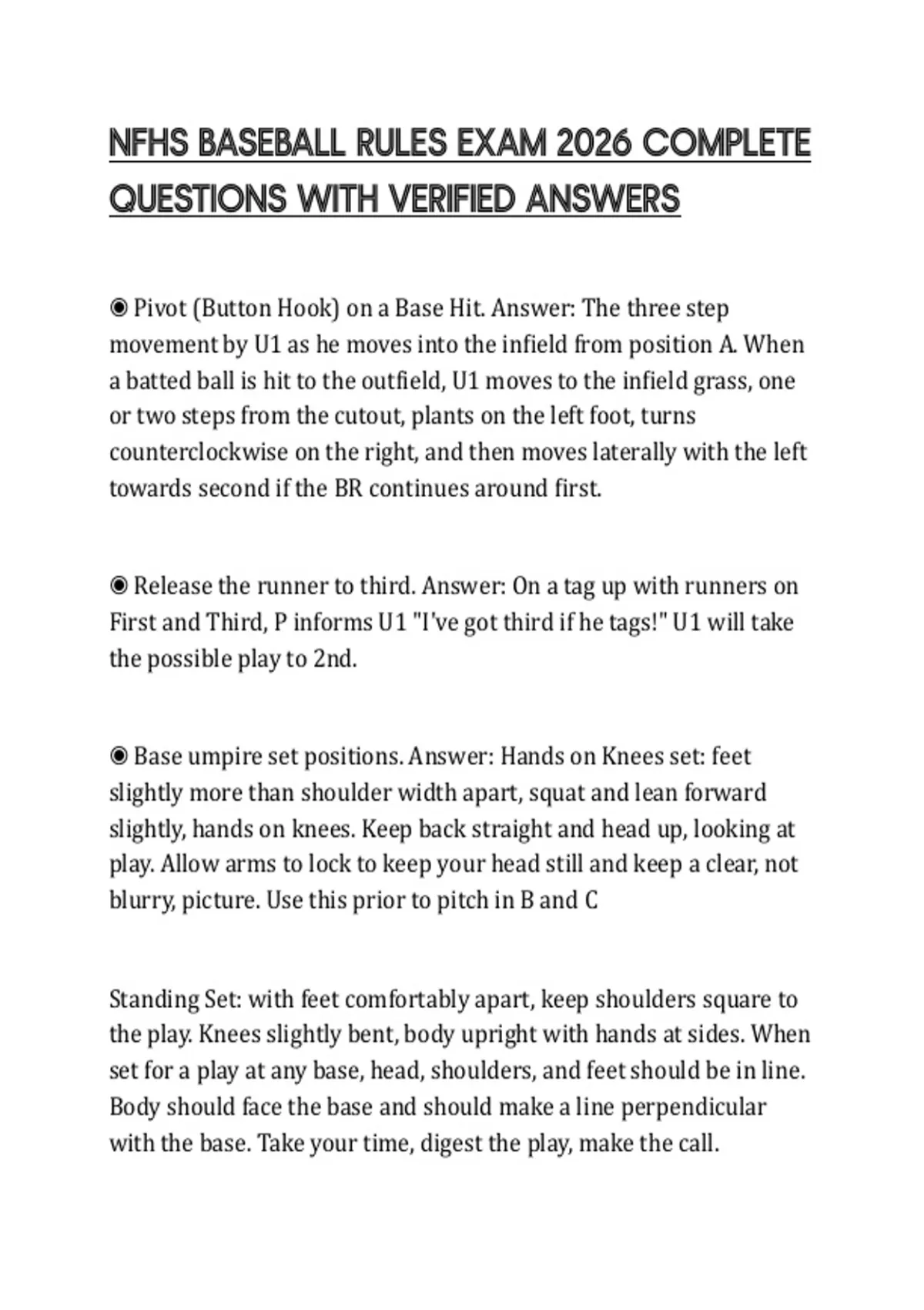 NFHS BASEBALL RULES EXAM 2026 COMPLETE QUESTIONS WITH VERIFIED ANSWERS