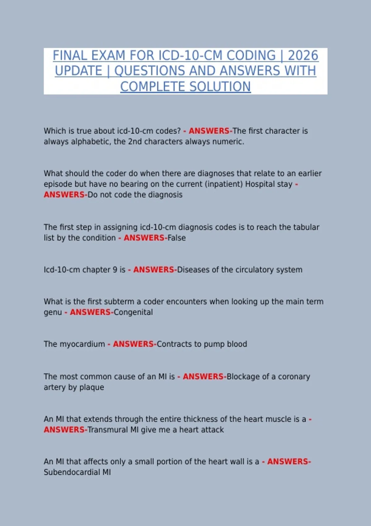 ANSWERS-Do not code the diagnosis