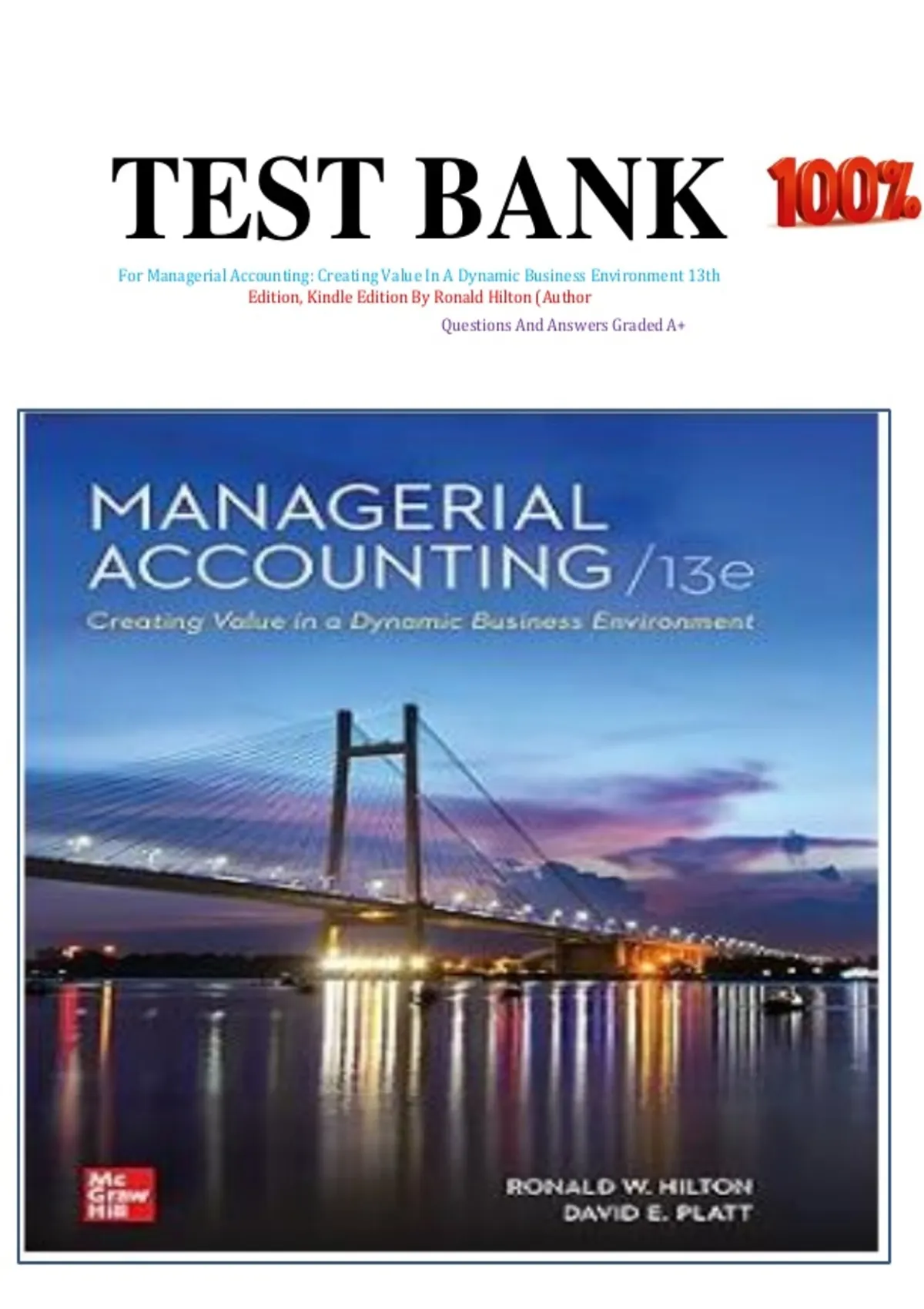TEST BANK For Managerial Accounting: Creating Value In A Dynamic Business Environment 13th Edition, Kindle Edition By Ronald Hilton (Author Questions And Answers Graded A+