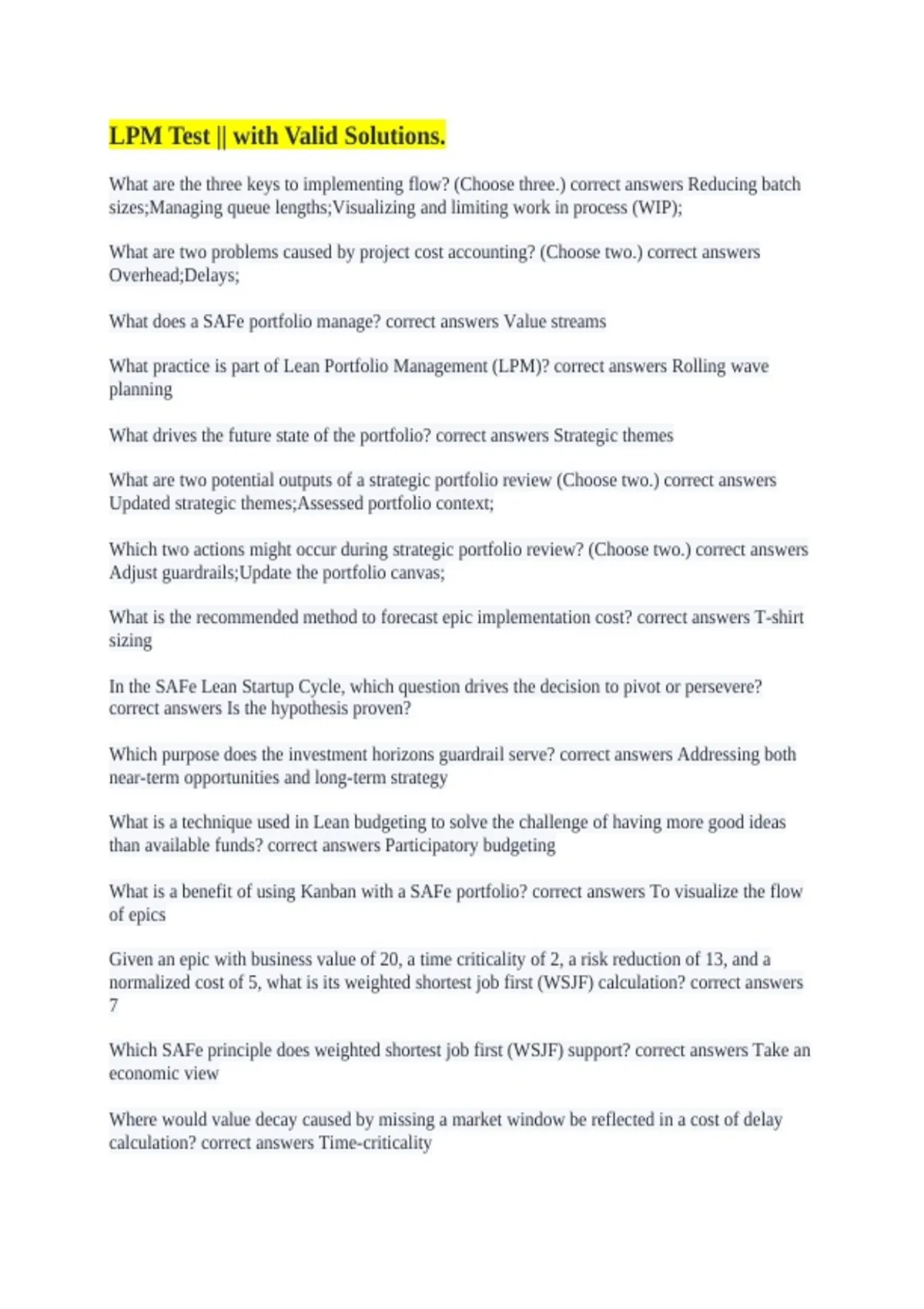 What practice is part of Lean Portfolio Management (LPM)? correct answers Rolling wave