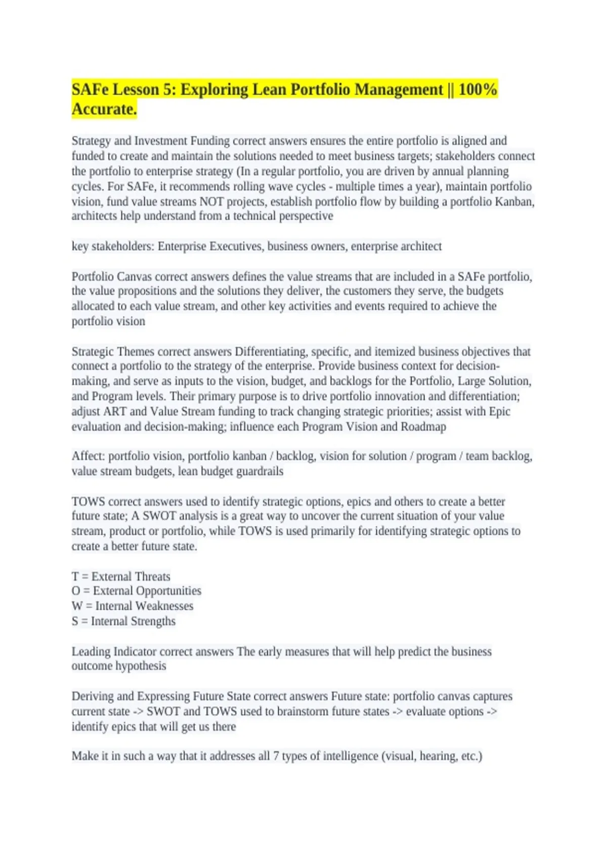 Portfolio SAFe correct answers aligns strategy with execution and organizes solution