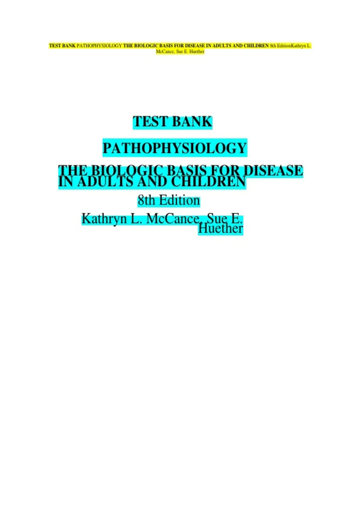 TEST BANK PATHOPHYSIOLOGY THE BIOLOGIC BASIS FOR DISEASE IN ADULTS AND CHILDREN 8th EditionKathryn L.