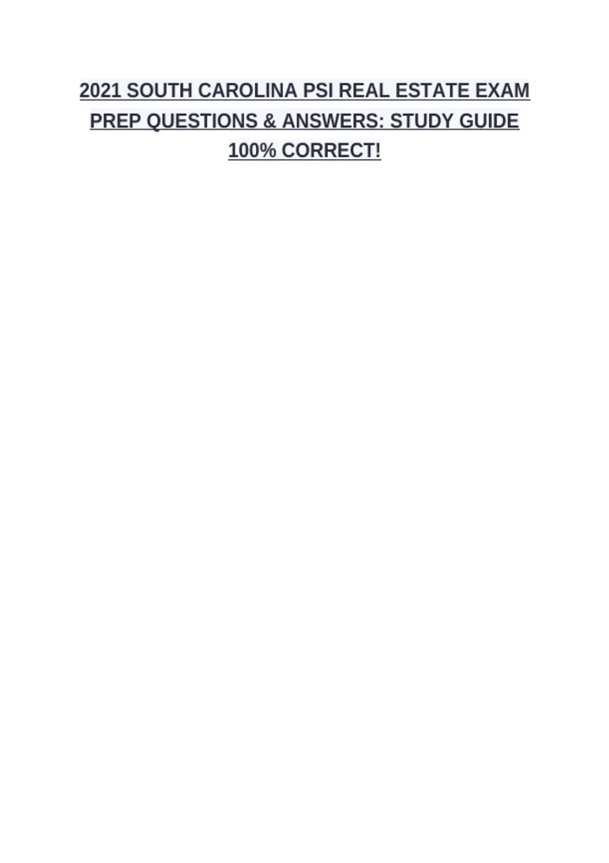 2021 SOUTH CAROLINA PSI REAL ESTATE EXAM PREP QUESTIONS & ANSWERS: STUDY GUIDE 100% CORRECT!