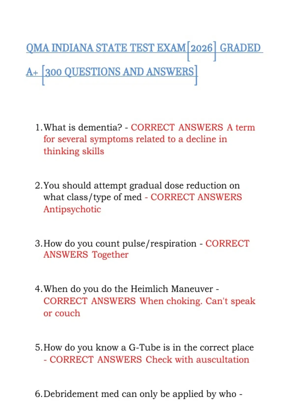 QMA INDIANA STATE TEST EXAM GRADED A+ (300 QUESTIONS AND ANSWERS)(latest 2026 ) Ace your exam!