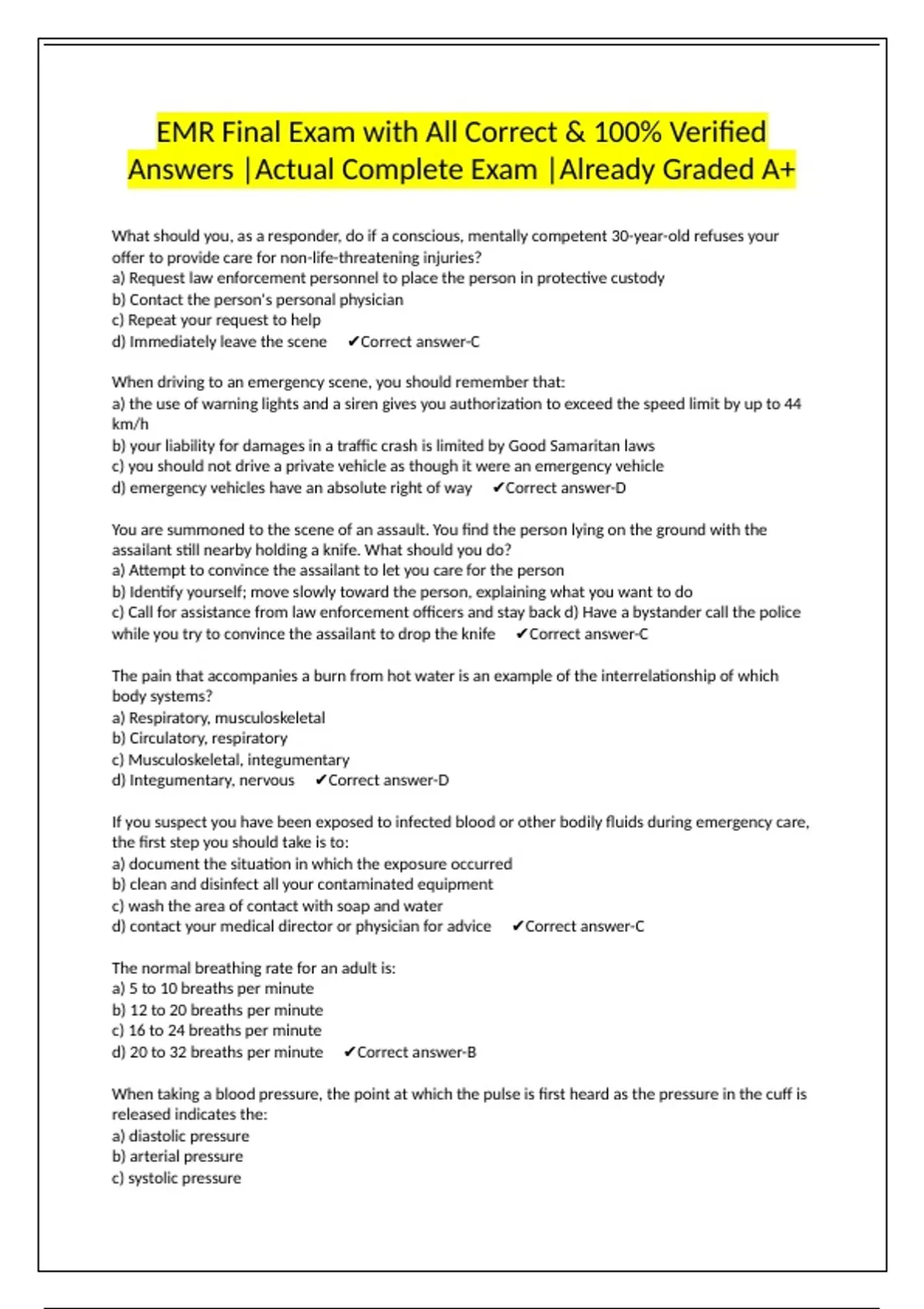 Answers |Actual Complete Exam |Already Graded A+