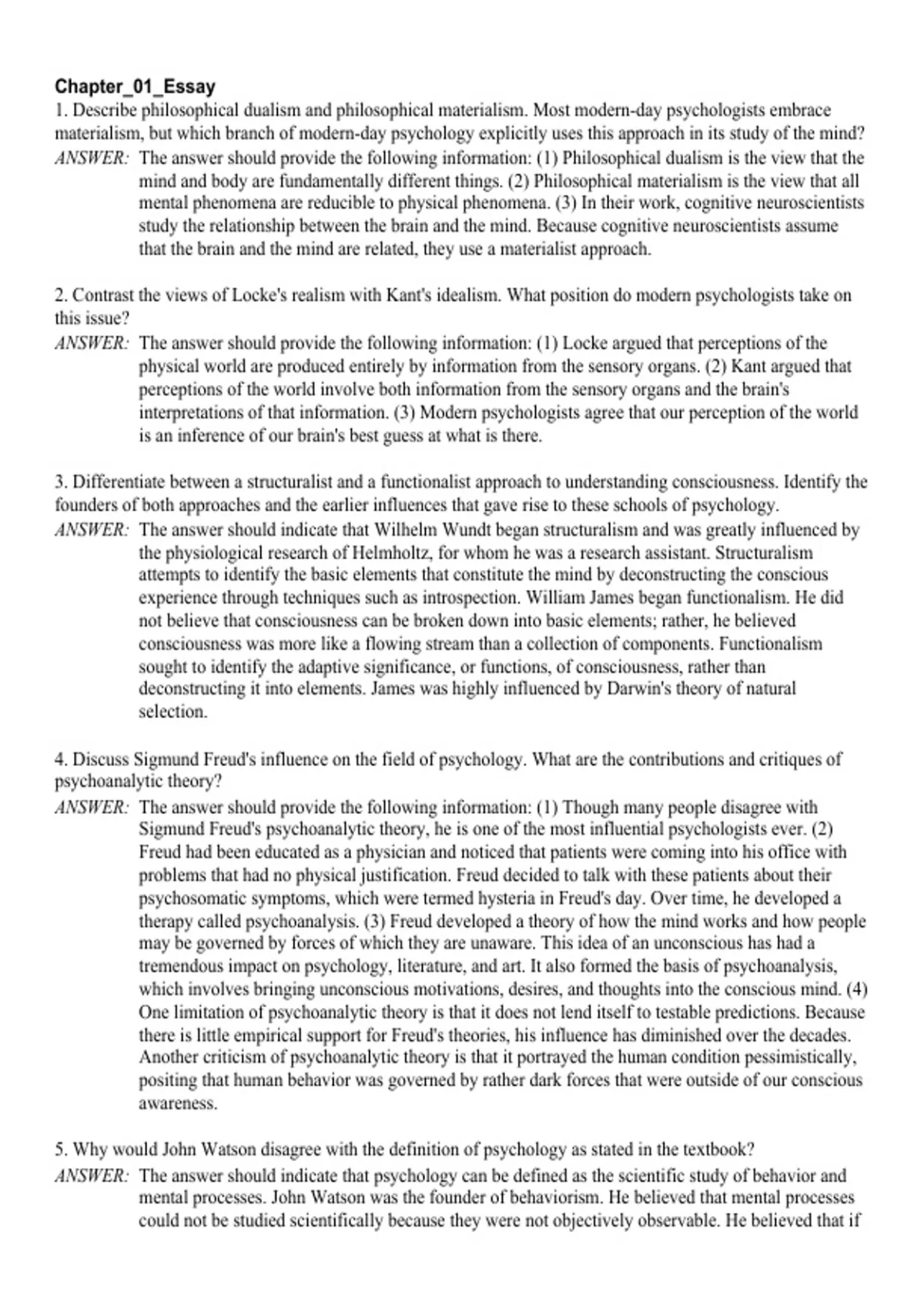 1. Describe philosophical dualism and philosophical materialism. Most modern-day psychologists embrace