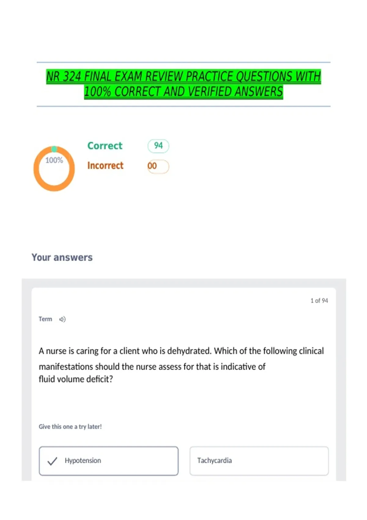 100% CORRECT AND VERIFIED ANSWERS