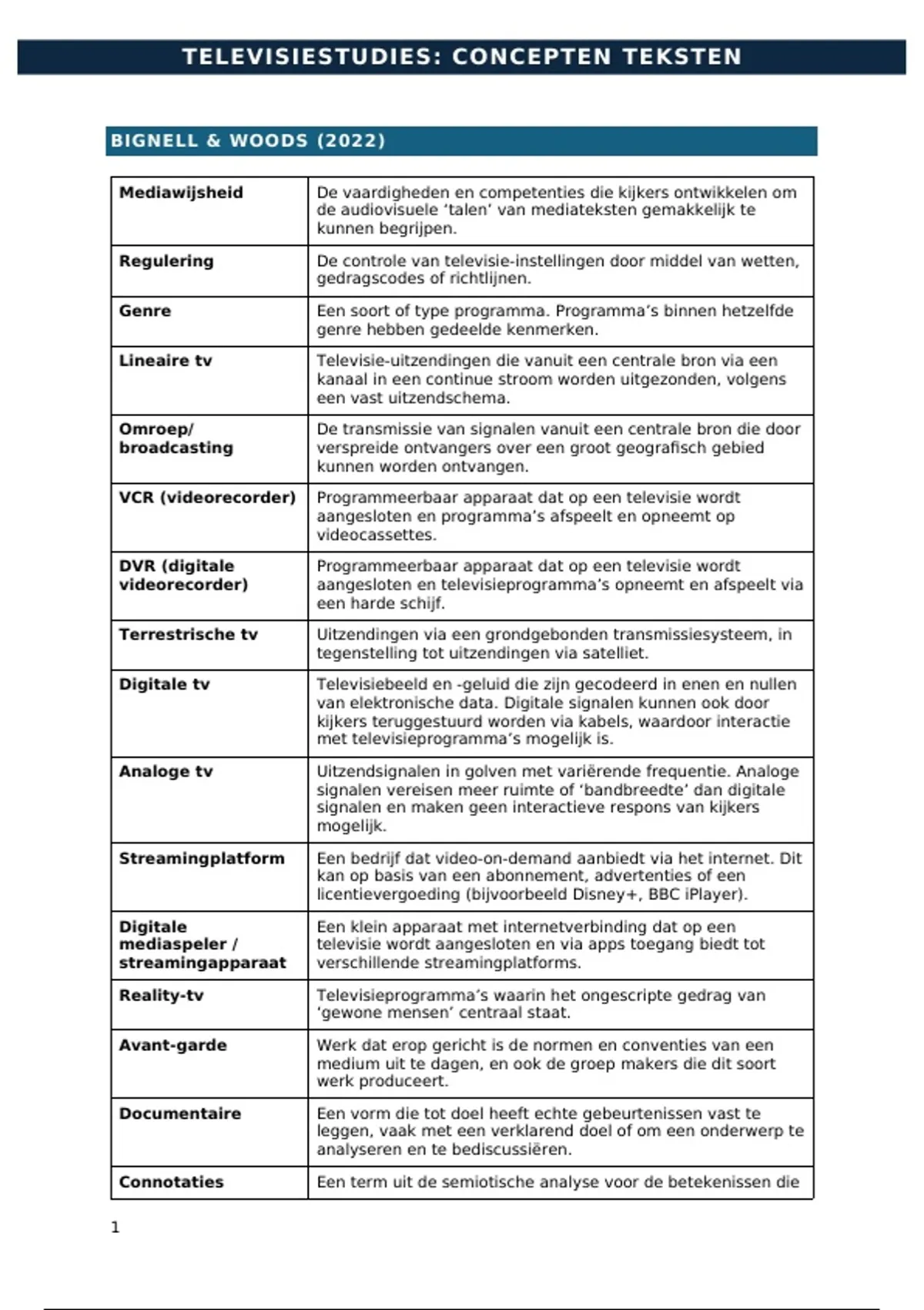 , TELEVISIESTUDIES: CONCEPTEN TEKSTEN