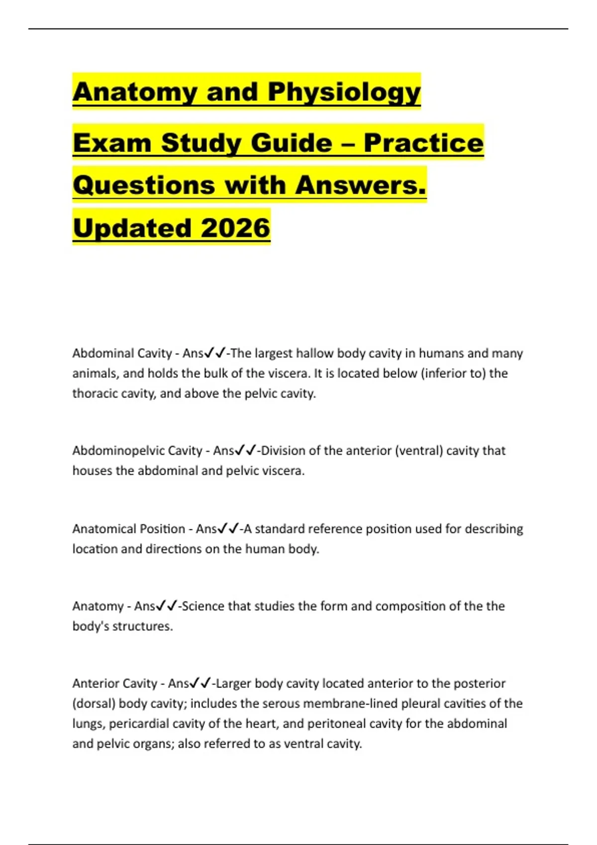 Anatomy and Physiology Exam Study Guide – Practice Questions with Answers. Updated 2026