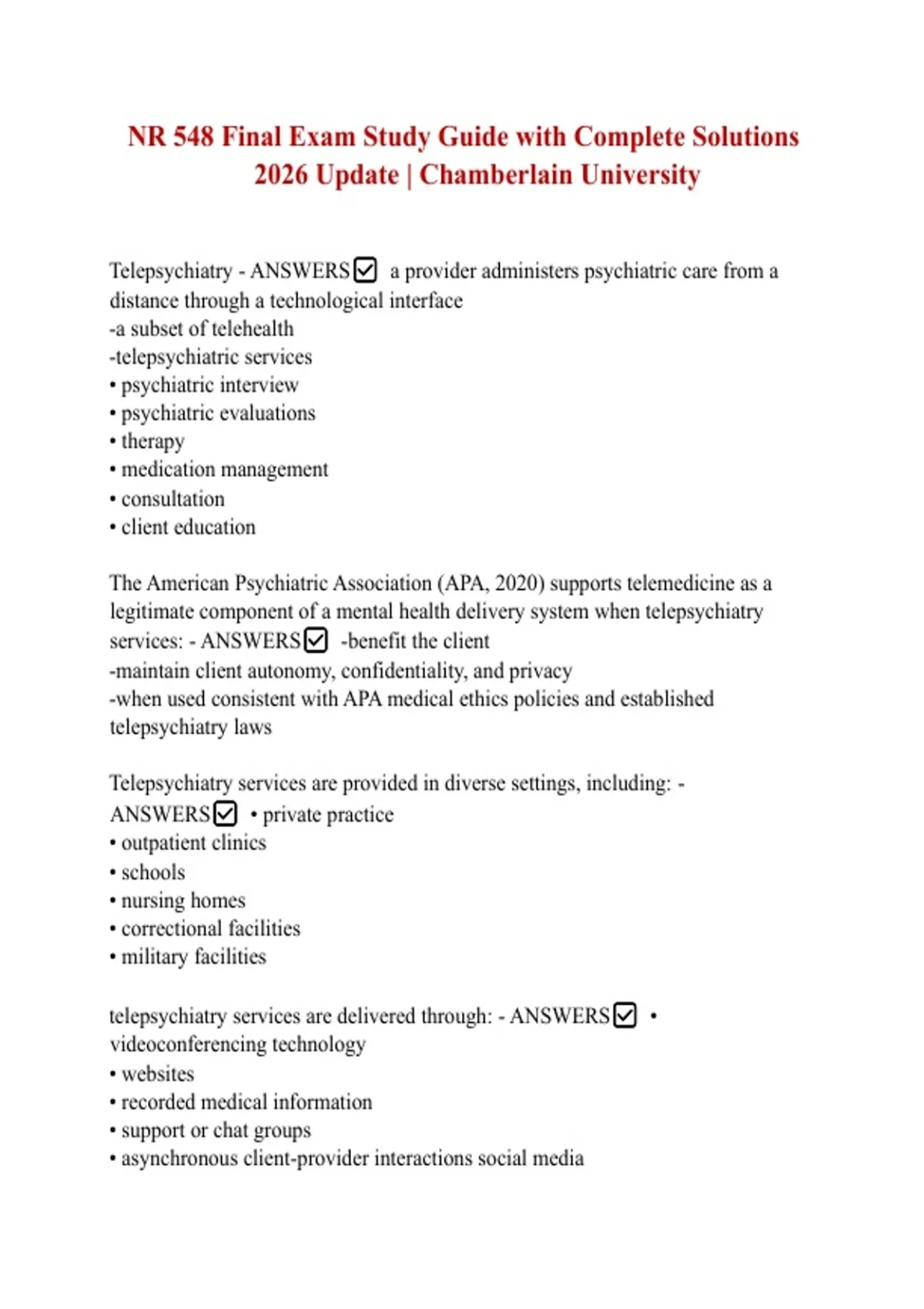 NR 548 Final Exam Study Guide with Complete Solutions 2026 Update | Chamberlain University