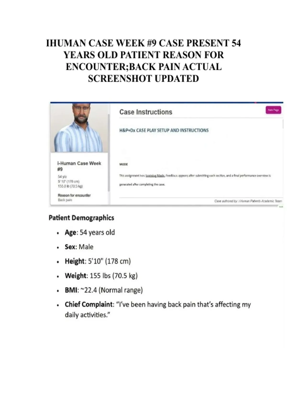 IHUMAN CASE WEEK #9 CASE PRESENT 54 YEARS OLD PATIENT REASON FOR ENCOUNTER;BACK PAIN ACTUAL SCREENSHOT UPDATEDIHUMAN CASE WEEK #9 CASE PRESENT 54 YEARS OLD PATIENT REASON FOR ENCOUNTER;BACK PAIN ACTUAL SCREENSHOT UPDATED